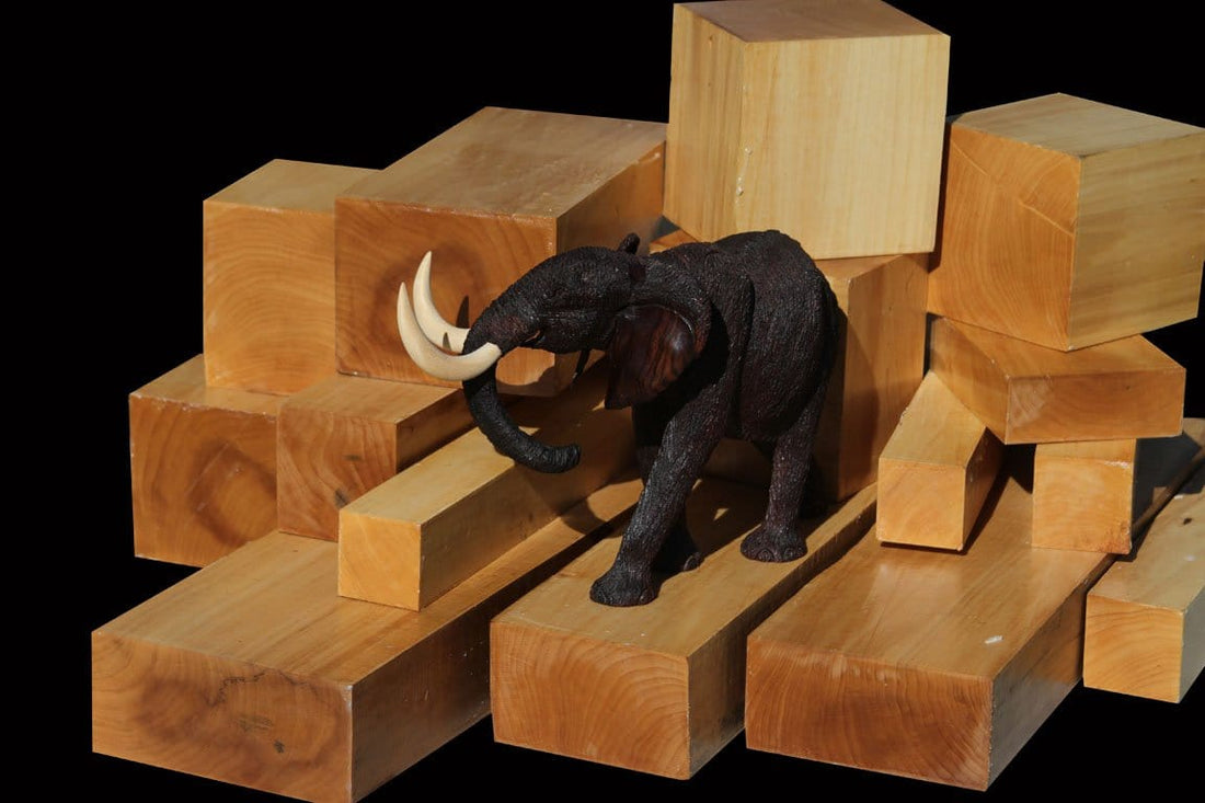 Ivory wood is a unique species that is superb in color and working properties. This allows it to be utilized as a substitute for real Ivory while not putting pressure on living Elephants. As you can see in our photo, we have an Ebony Elephant with Ivory wood tusks. The tusks on the Elephant are natural without a finish. The wood is easy to carve and finish as it is a light to medium density hardwood that is similar to Big Leaf Maple.