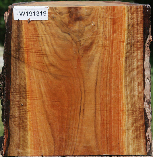 Wilga, Geijera parviflora, is a shrub or a small Eastern Australian tree that grows up to a height of 25 - 32 ft. tall with diameters of 6 to 20 inches and produces a small, black, circular fruit. Common names include Australian Willow, Native Willow, Sheepbush and Dogwood. Sheep commonly forage on the lower limbs of the tree. Wilga leaves produce a strong smell when crushed and were traditionally chewed by Aborigines who used them to alleviate toothaches. The Wilga tree produces a fine, closed grained hardwood that is dense and durable. It works well with sharp tools, taking a high, smooth natural polish. Some blunting of tools is possible and the wood is somewhat difficult to dry. Fiddleback sometimes shows on quartersawn faces. Beautiful, contrasting color is often present between the growth rings in shades of pinkish red to faint yellow with hints of brown. This species is ideal for woodturning, knife scales, fine boxes, and many other woodworking projects.