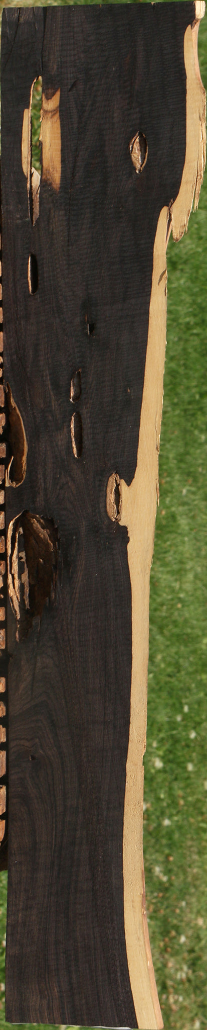 Hidden in a special stash and dried for 15 years, this highly prized African Blackwood is ready for your projects now! This extraordinary, premium grade material is very dark in color and high in quality. Many pieces contain a live edge with checks, as well as surface checks. Please see photos for irregular sizes and voids that may exist in some boards. Some may have a soft area. Lumber is either wax sealed on the ends or completely wax sealed. When first cut, African Blackwood looks grey with color streaks but when finish is applied, it looks black. African Blackwood is the best tone wood in the world. This wood ships to the USA only. This piece has inclusions, worm holes, and checks. Please see pictures for details.
