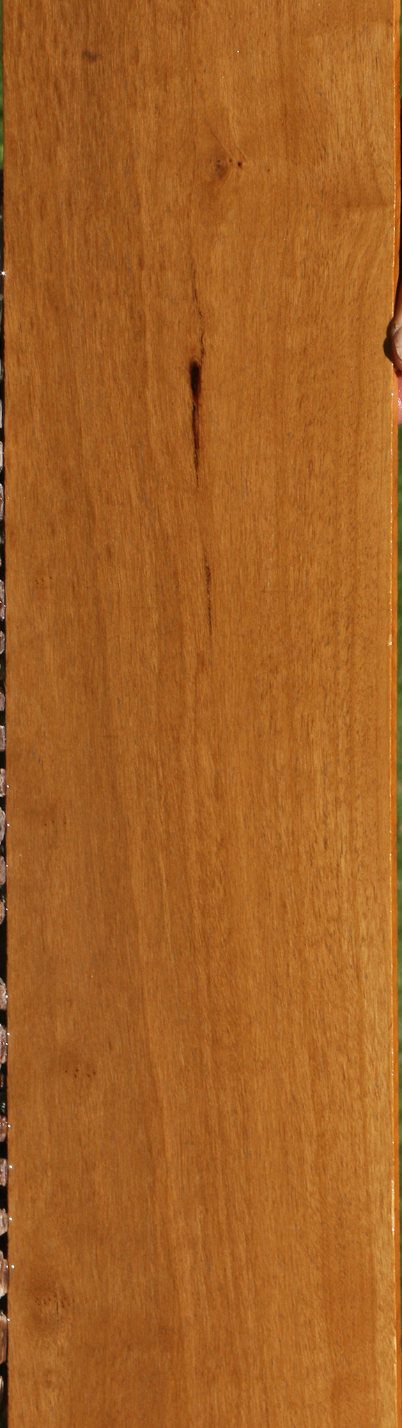 African Bog Birch is a historic hardwood that sat in peat bogs in West Africa for 1,000 years or more. During that time, it acquired a lot of minerals which darkened the wood and made it much more dense. This density rivals species like Bolivian Rosewood and Bocote, producing a very high polish in finished woodworking projects. This lumber has been kiln dried, surfaced on two sides, and is ready to use. Colors range from defined brown heartwood to whitish tan sapwood. African Bog Birch works easily with sharp tools. Take advantage of this extremely unique opportunity, as this is a species we've never had and didn't think we'd get in again. We have only a few pieces this time! This piece has a 1/8" twist, checks, splits, and inclusions. Please see pictures for details.