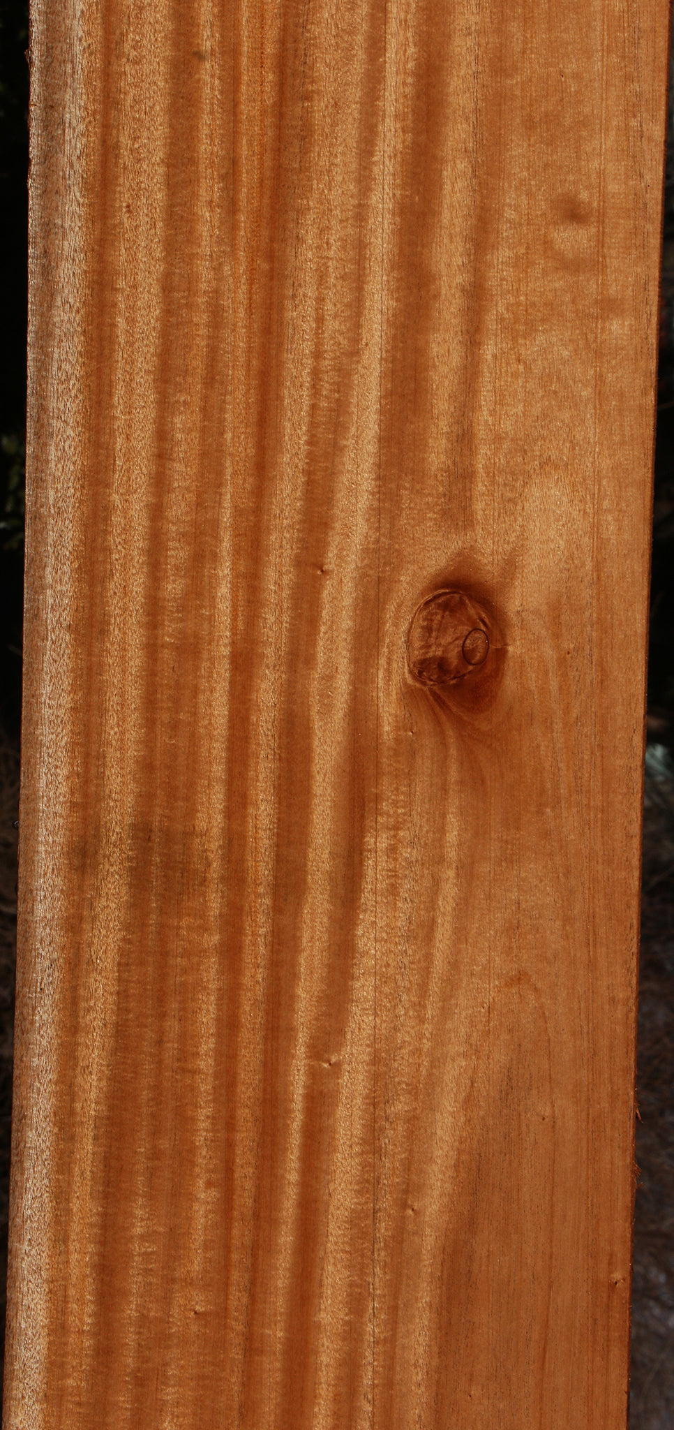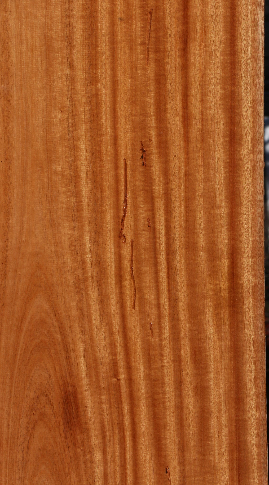 This beautiful lumber has wonderful color and a range of patterns and figure. Pieces over 36" long or over 15" wide may have a 1/8" bow/cup/twist that will lay flat with minimal pressure. This lumber is surfaced, kiln dried, and ready to use! African Mahogany has great working properties and easy gluing which makes it ideal for many fine woodworking projects. This piece has planer skip and knots. Please see pictures for details.