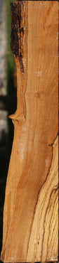 African Wild Olivewood is a rare and dense hardwood from Southeastern Africa. For all practical purposes, this "tree" is no more than an overgrown shrub. It produces extremely dense wood that is oily and takes a wonderful, high natural polish. Patterns in this species are unique and lend themselves well to distinctive woodworking projects. African Olive is commonly used for turned items, tool handles, sculptures, boxes, and other fine articles. Live edges, checks, voids, and inclusions may be possible (please view photos). A 1/16" to 1/8" bow/twist may be present in boards over 24". This piece has bug holes. Please see pictures for details.