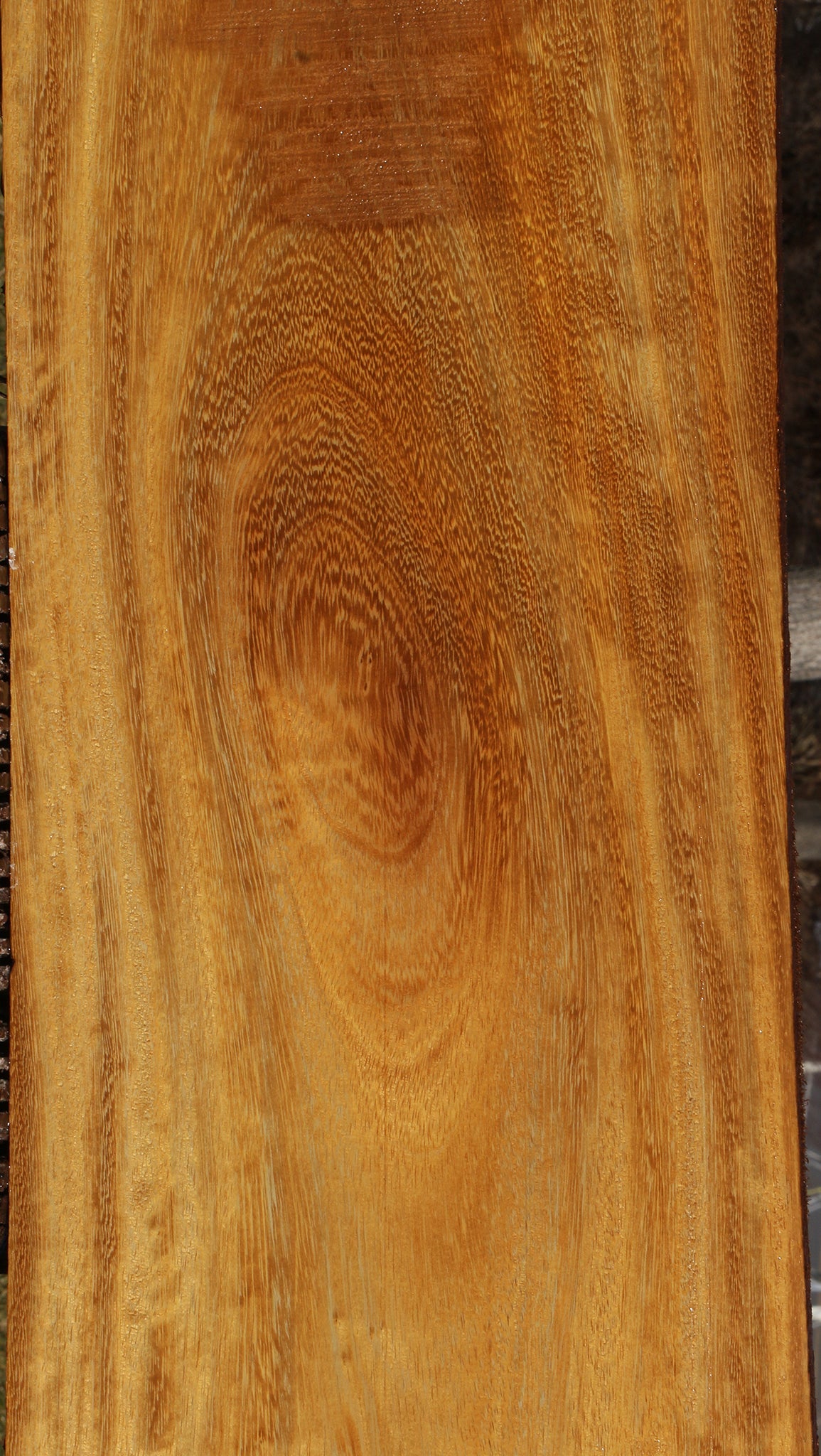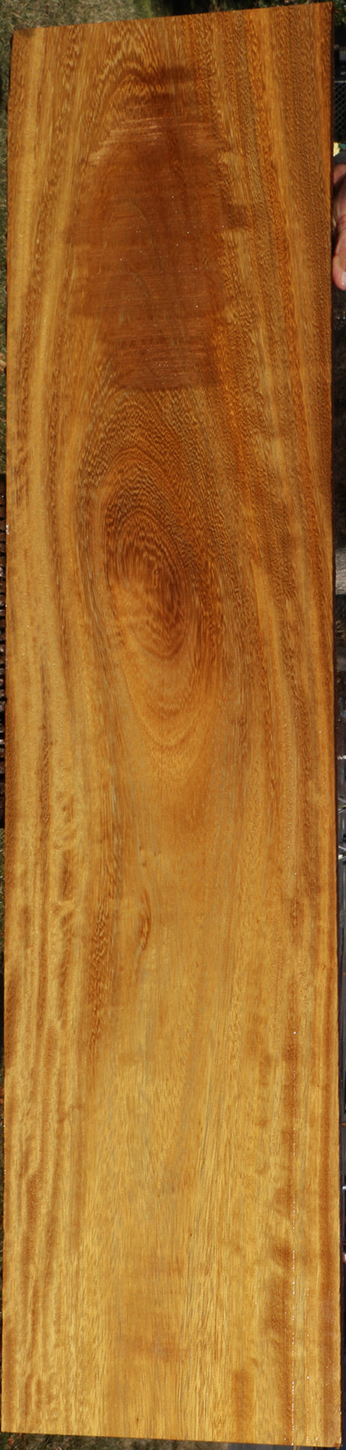 This African Teak lumber is kiln dried and has been surfaced on two sides. The heartwood ranges from yellow to golden with a slight hint of brown. It has a coarse texture with open grain. Quarter or rift sawn boards may show some ribbon or fiddleback figure, as shown in the picture of each item. A minor end or surface check may be present. Boards over 36" may have a slight 1/16" to 1/8" bow/twist. This is an exceptional substitute for genuine Burma Teak at a fraction of the cost! This piece has checks and planer skip. Please see pictures for details.