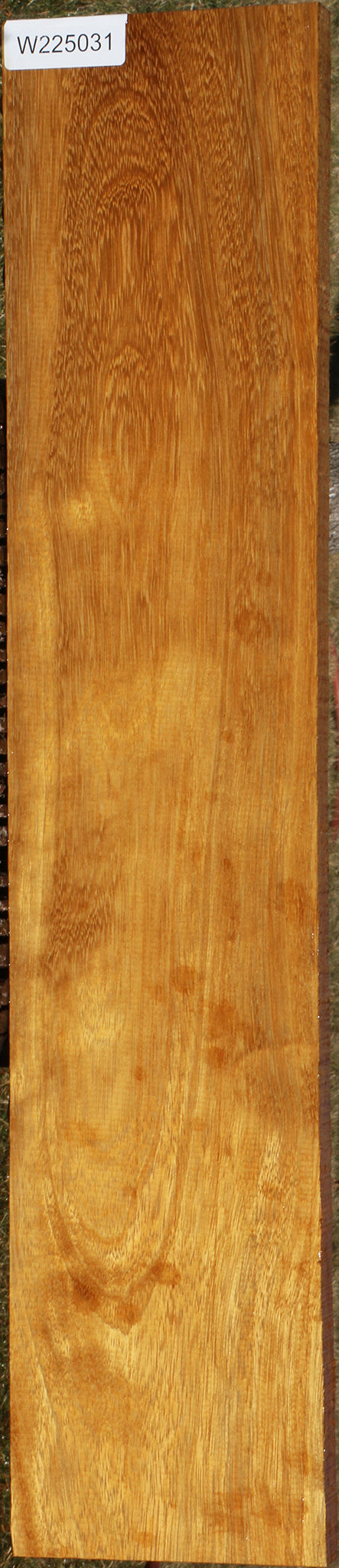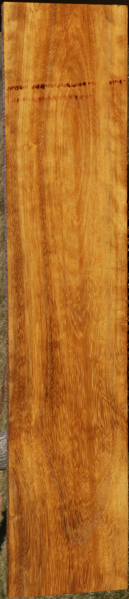 This African Teak lumber is kiln dried and has been surfaced on two sides. The heartwood ranges from yellow to golden with a slight hint of brown. It has a coarse texture with open grain. Quarter or rift sawn boards may show some ribbon or fiddleback figure, as shown in the picture of each item. A minor end or surface check may be present. Boards over 36" may have a slight 1/16" to 1/8" bow/twist. This is an exceptional substitute for genuine Burma Teak at a fraction of the cost! This piece has an end split. Please see pictures for details.