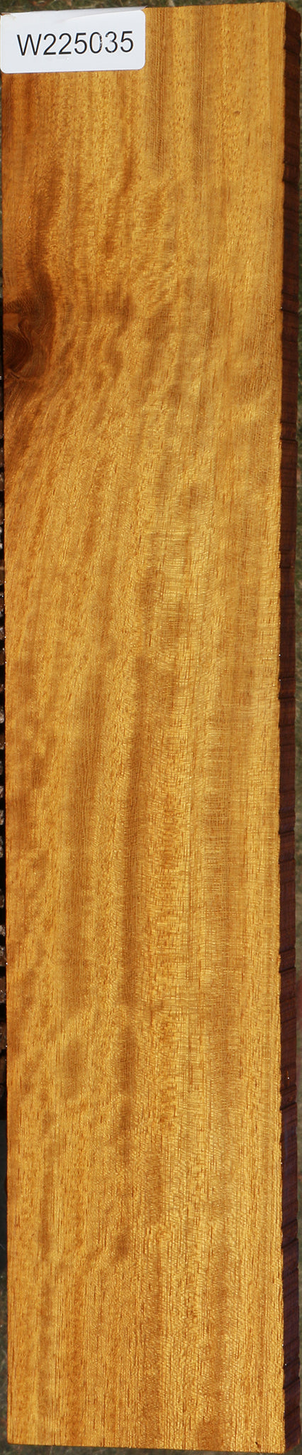 This African Teak lumber is kiln dried and has been surfaced on two sides. The heartwood ranges from yellow to golden with a slight hint of brown. It has a coarse texture with open grain. Quarter or rift sawn boards may show some ribbon or fiddleback figure, as shown in the picture of each item. A minor end or surface check may be present. Boards over 36" may have a slight 1/16" to 1/8" bow/twist. This is an exceptional substitute for genuine Burma Teak at a fraction of the cost! This piece has inclusions. Please see pictures for details.