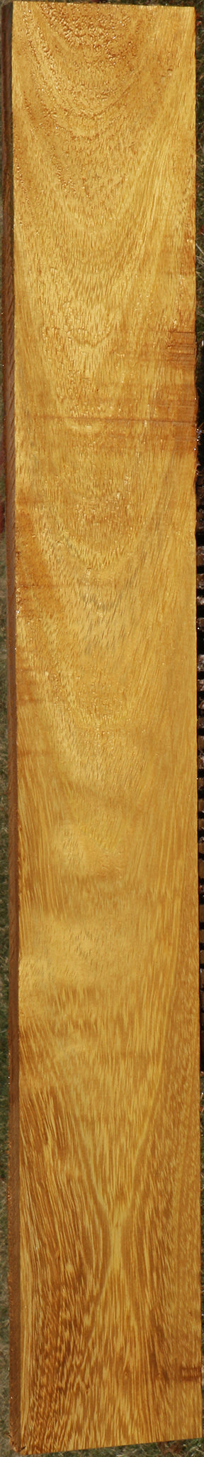 This African Teak lumber is kiln dried and has been surfaced on two sides. The heartwood ranges from yellow to golden with a slight hint of brown. It has a coarse texture with open grain. Quarter or rift sawn boards may show some ribbon or fiddleback figure, as shown in the picture of each item. A minor end or surface check may be present. Boards over 36" may have a slight 1/16" to 1/8" bow/twist. This is an exceptional substitute for genuine Burma Teak at a fraction of the cost! This piece has planer skip. Please see pictures for details.
