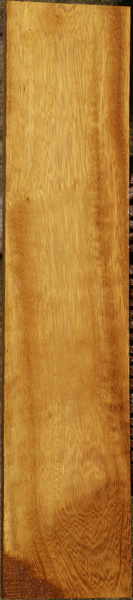 This African Teak lumber is kiln dried and has been surfaced on two sides. The heartwood ranges from yellow to golden with a slight hint of brown. It has a coarse texture with open grain. Quarter or rift sawn boards may show some ribbon or fiddleback figure, as shown in the picture of each item. A minor end or surface check may be present. Boards over 36" may have a slight 1/16" to 1/8" bow/twist. This is an exceptional substitute for genuine Burma Teak at a fraction of the cost!