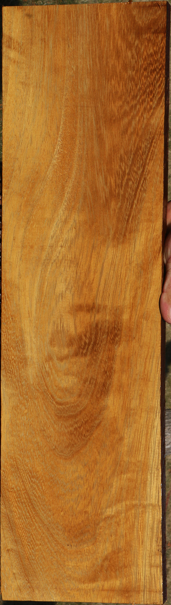This African Teak lumber is kiln dried and has been surfaced on two sides. The heartwood ranges from yellow to golden with a slight hint of brown. It has a coarse texture with open grain. Quarter or rift sawn boards may show some ribbon or fiddleback figure, as shown in the picture of each item. A minor end or surface check may be present. Boards over 36" may have a slight 1/16" to 1/8" bow/twist. This is an exceptional substitute for genuine Burma Teak at a fraction of the cost! This piece has inclusions. Please see pictures for details.