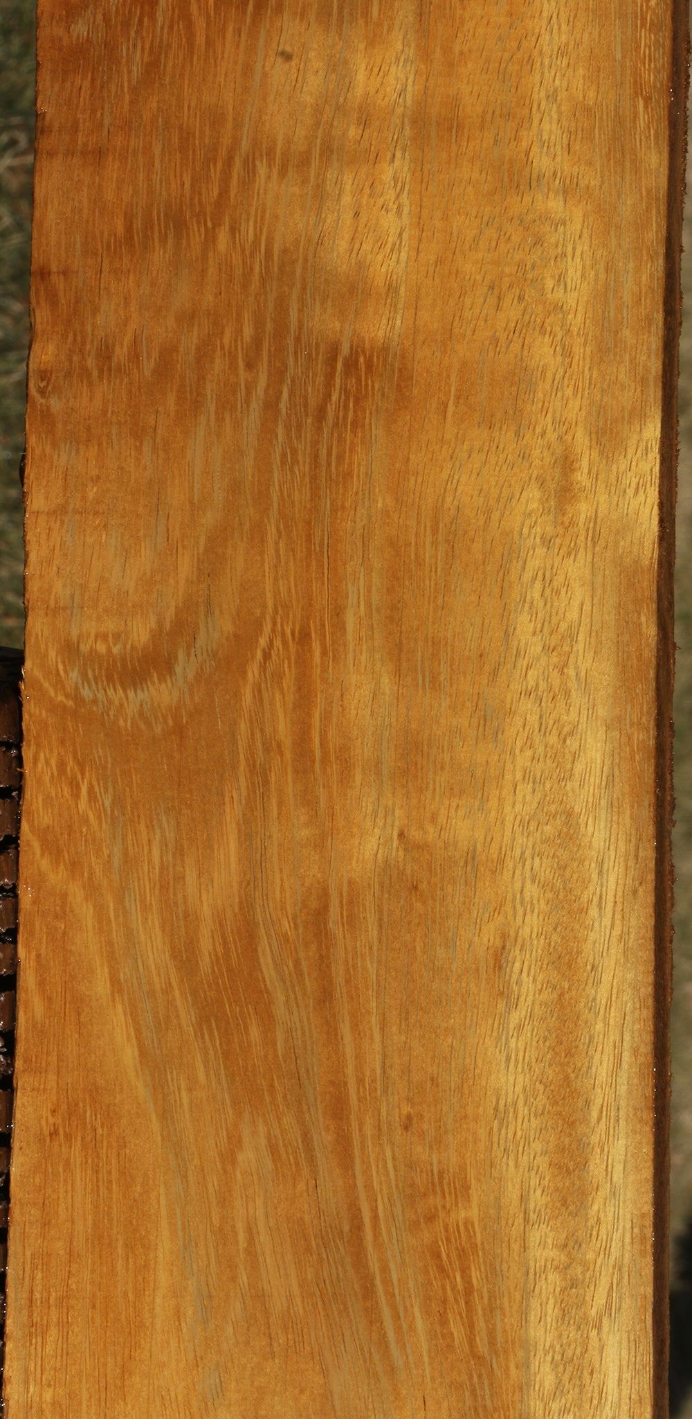 This African Teak lumber is kiln dried and has been surfaced on two sides. The heartwood ranges from yellow to golden with a slight hint of brown. It has a coarse texture with open grain. Quarter or rift sawn boards may show some ribbon or fiddleback figure, as shown in the picture of each item. A minor end or surface check may be present. Boards over 36" may have a slight 1/16" to 1/8" bow/twist. This is an exceptional substitute for genuine Burma Teak at a fraction of the cost! This piece has inclusions. Please see pictures for details.