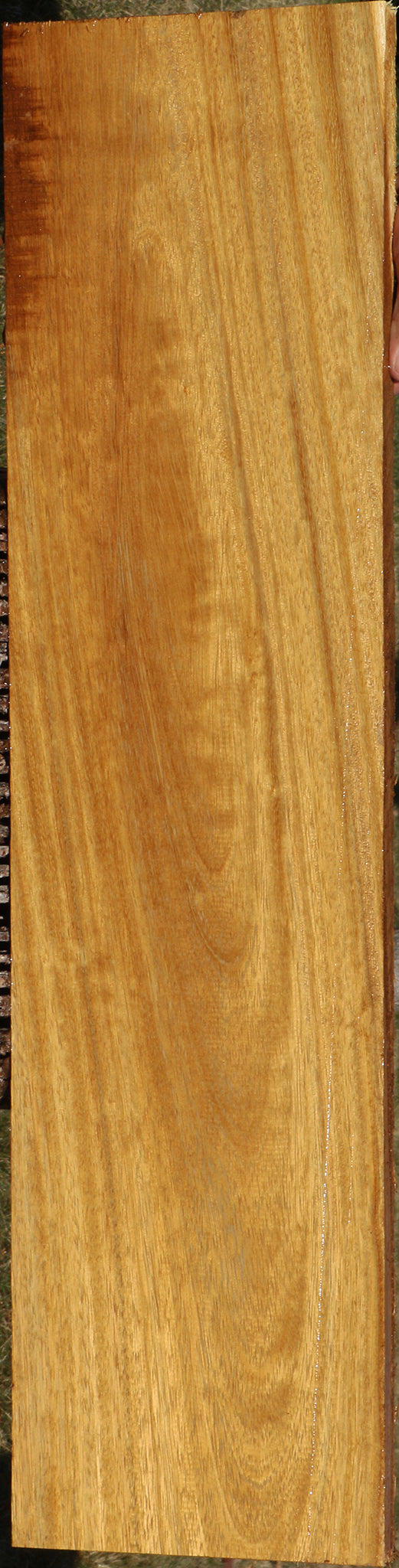 This African Teak lumber is kiln dried and has been surfaced on two sides. The heartwood ranges from yellow to golden with a slight hint of brown. It has a coarse texture with open grain. Quarter or rift sawn boards may show some ribbon or fiddleback figure, as shown in the picture of each item. A minor end or surface check may be present. Boards over 36" may have a slight 1/16" to 1/8" bow/twist. This is an exceptional substitute for genuine Burma Teak at a fraction of the cost! This piece has planer skip. Please see pictures for details.