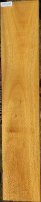 This African Teak lumber is kiln dried and has been surfaced on two sides. The heartwood ranges from yellow to golden with a slight hint of brown. It has a coarse texture with open grain. Quarter or rift sawn boards may show some ribbon or fiddleback figure, as shown in the picture of each item. A minor end or surface check may be present. Boards over 36" may have a slight 1/16" to 1/8" bow/twist. This is an exceptional substitute for genuine Burma Teak at a fraction of the cost! This piece has an edge split. Please see pictures for details.