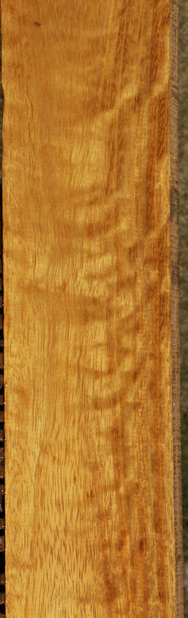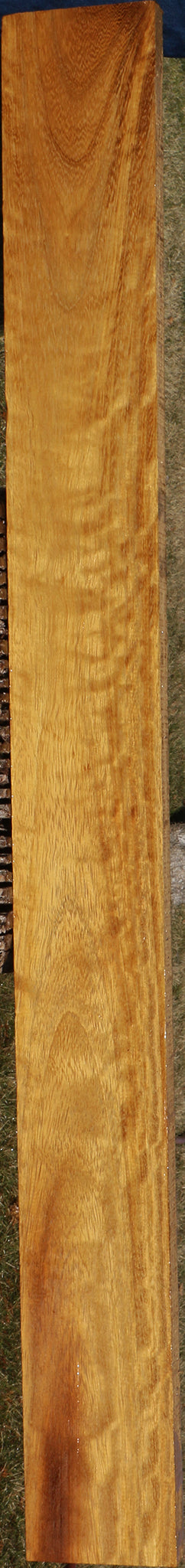 This African Teak lumber is kiln dried and has been surfaced on two sides. The heartwood ranges from yellow to golden with a slight hint of brown. It has a coarse texture with open grain. Quarter or rift sawn boards may show some ribbon or fiddleback figure, as shown in the picture of each item. A minor end or surface check may be present. Boards over 36" may have a slight 1/16" to 1/8" bow/twist. This is an exceptional substitute for genuine Burma Teak at a fraction of the cost!