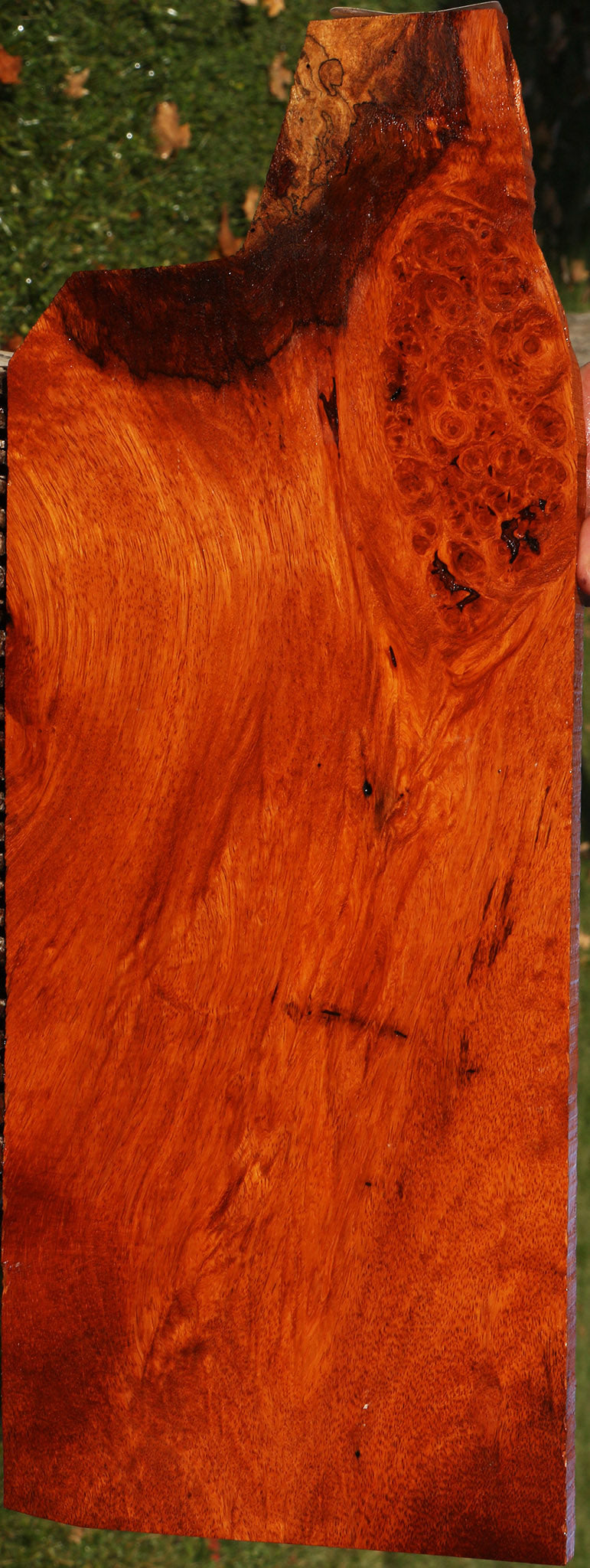 This exceptional stock combines figure and burl with warm Amboyna-like colors! There are inclusions present on all pieces. Some may have rough edges and small voids. Crushed turquoise or other minerals can be used as a stunning inlay contrast in areas that contain inclusions. This stock has been air dried for 7 years and is ready to use. This piece has burl clusters, inclusions, and bug holes. Please see pictures for details.