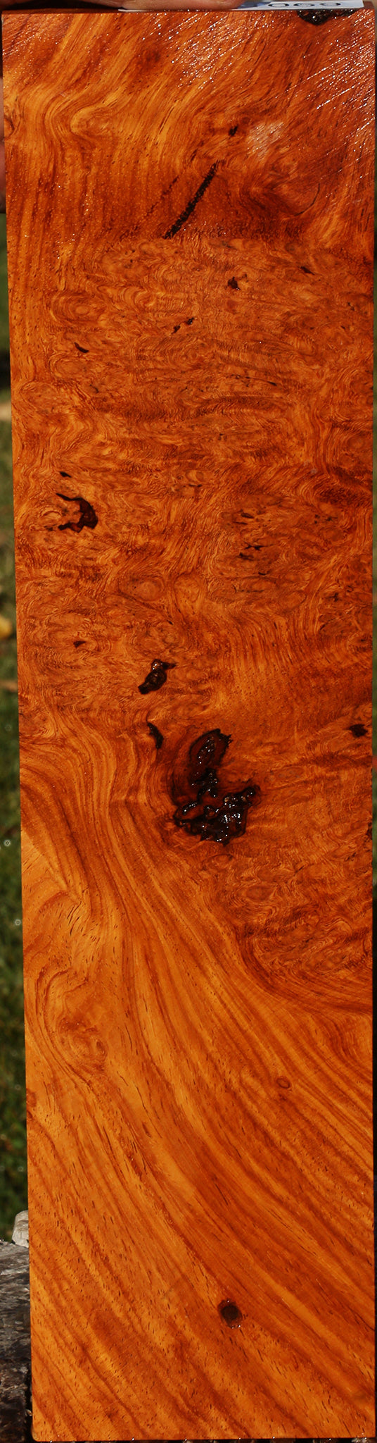 This exceptional stock combines figure and burl with warm Amboyna-like colors! There are inclusions present on all pieces. Some may have rough edges and small voids. Crushed turquoise or other minerals can be used as a stunning inlay contrast in areas that contain inclusions. This stock has been air dried for 7 years and is ready to use. This piece has inclusions. Please see pictures for details.