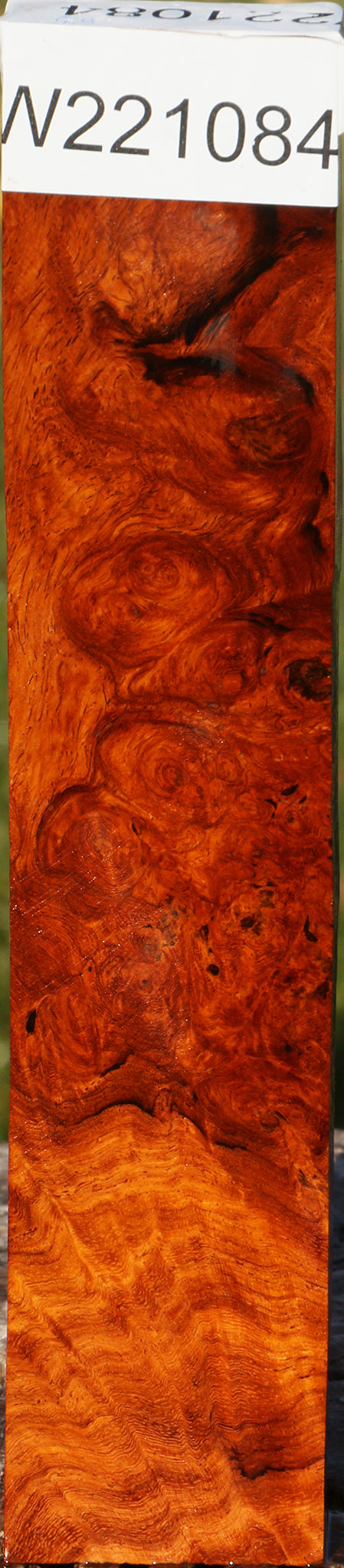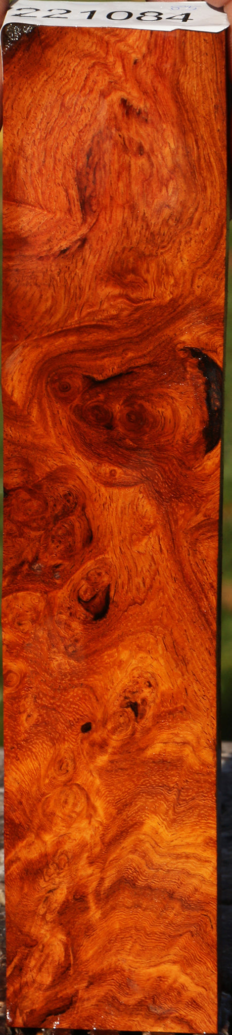 This exceptional stock combines figure and burl with warm Amboyna-like colors! There are inclusions present on all pieces. Some may have rough edges and small voids. Crushed turquoise or other minerals can be used as a stunning inlay contrast in areas that contain inclusions. This stock has been air dried for 7 years and is ready to use. This piece has inclusions. Please see pictures for details.
