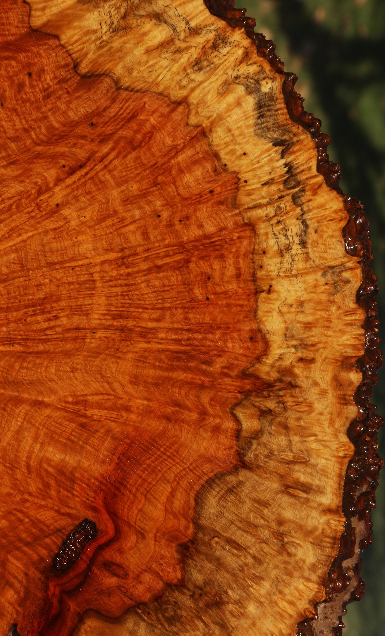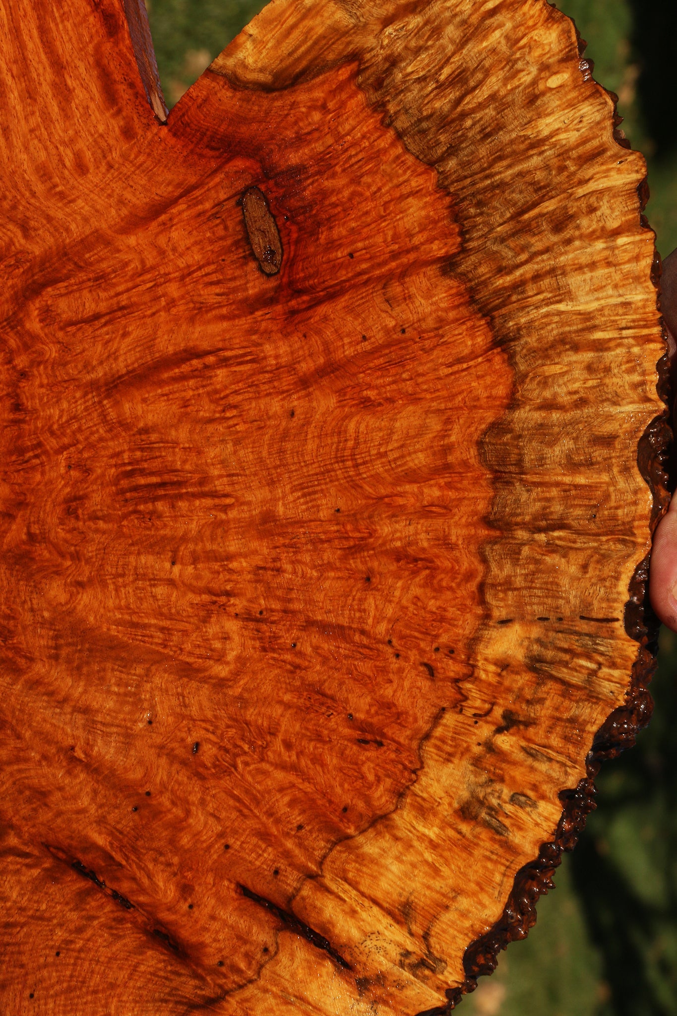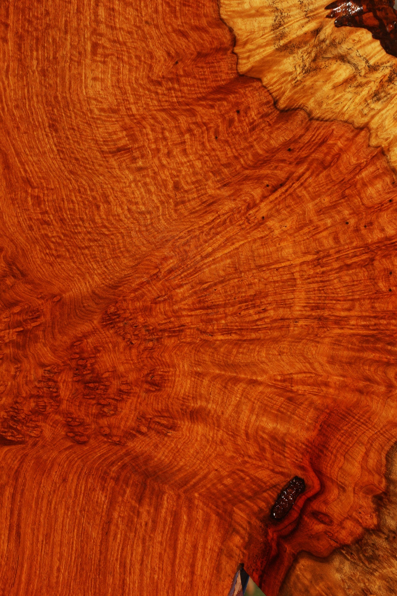 This exceptional stock combines figure and burl with warm Amboyna-like colors! There are inclusions present on all pieces. Some may have rough edges and small voids. Crushed turquoise or other minerals can be used as a stunning inlay contrast in areas that contain inclusions. This stock has been air dried for 7 years and is ready to use. This piece has bug holes, pin holes, inclusions, and checks. Please see pictures for details.