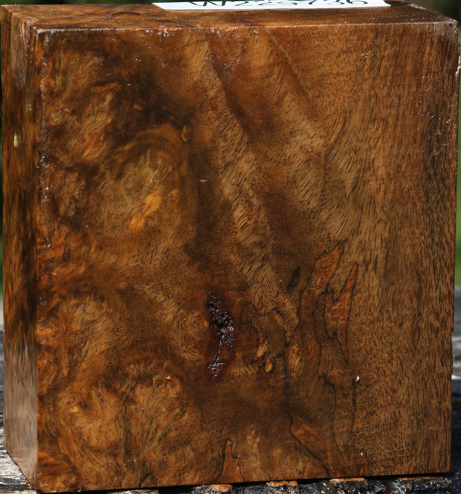 This lovely Laotian hardwood is full of gorgeous burl and interesting color. It works well and turns to a high natural polish. This wood is extremely rare. It has air dried for 4 years and contains residual moisture. It is fully wax sealed. Minor checks and inclusions may be present and will add character and beauty to your woodworking projects. This piece has inclusions. Please see pictures for details.