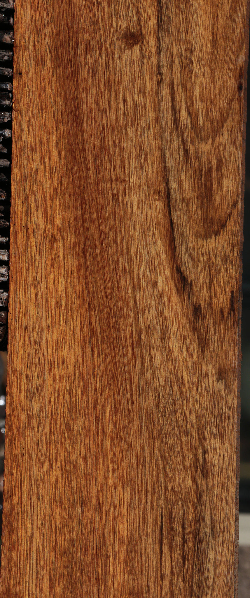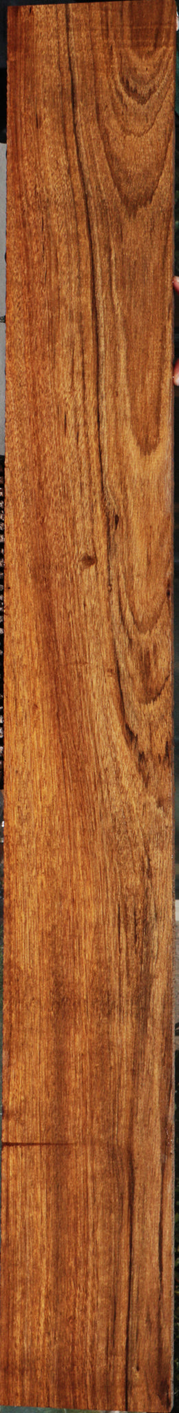Amazique has been used by several high end instrument companies worldwide for many years now. It is noted for its good tonality, color, and reasonable price. The grain is interlocked like Bubinga. In fact, it is from the same family as Bubinga and shares many of the same traits. This lumber is kiln dried and ready to use. A minor end or surface check may be present. Boards over 36" may have a slight 1/16" to 1/8" bow or twist. Enjoy the stunning iridescent shimmer in this species! This piece has pin holes and planer bite. Please see pictures for details.
