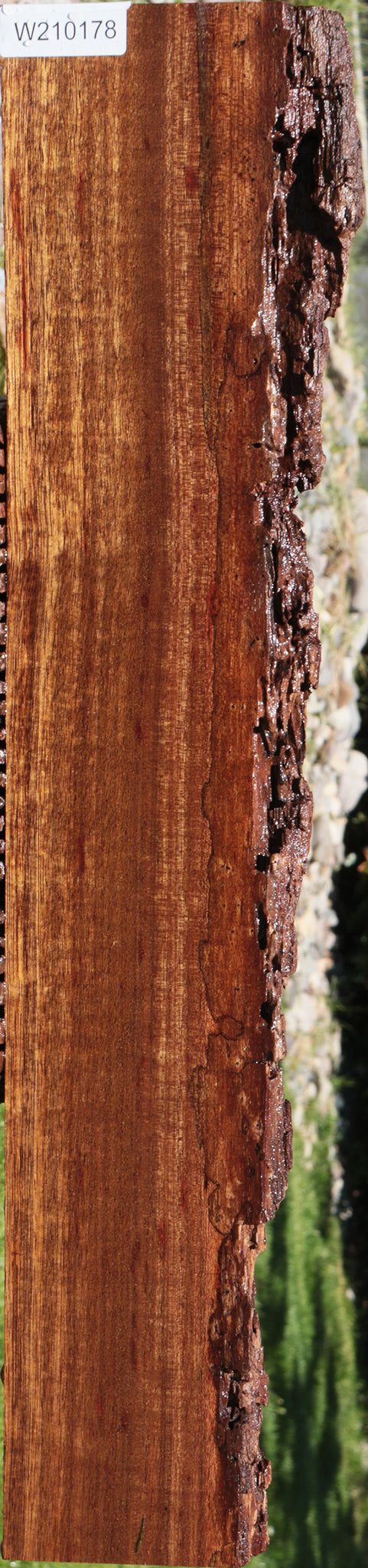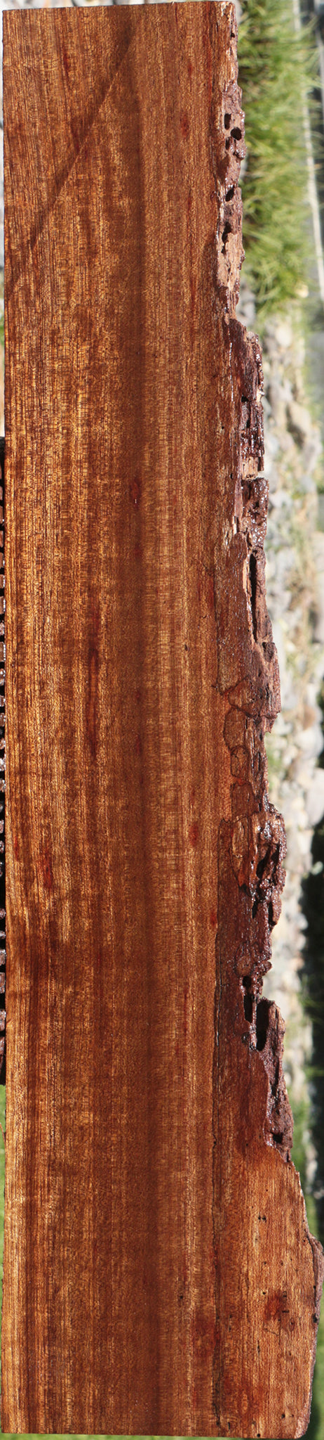 This piece has been air dried, surfaced on two sides, and is ready for use. This piece has checks and splits in the live edge, and bug holes. Please see pictures for details.