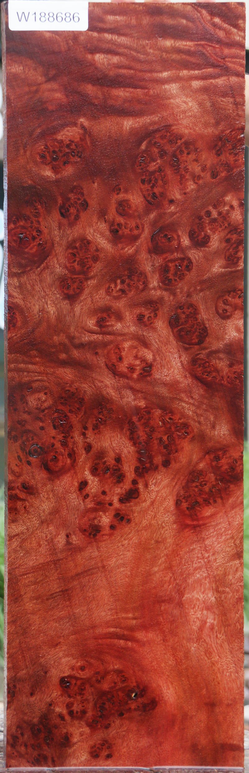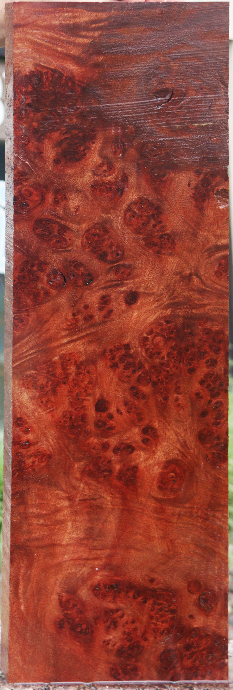 This extremely rare SE Asian Burl has been cut for over 10 years. It is air dried and ready to use. Bug holes, checks, live edges, and extensive inclusions are present, adding unique character to this hardwood species. Some of the inclusions/voids may contain clay, which can be easily removed with a screwdriver or other tool. This richly colored exotic wood will make woodworking projects really stand out! Use pieces whole or cut them into bottle stoppers, pen blanks, knife blanks, and other pieces for fine woodworking articles. This piece has checks, inclusions, and planer skip. Please see pictures for details.