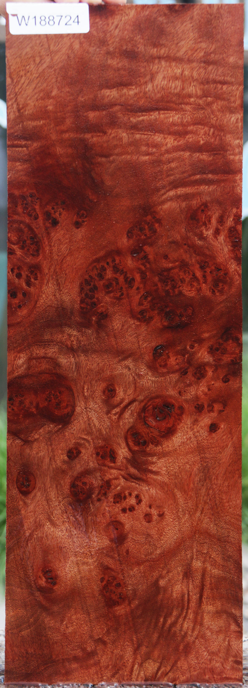 This extremely rare SE Asian Burl has been cut for over 10 years. It is air dried and ready to use. Bug holes, checks, live edges, and extensive inclusions are present, adding unique character to this hardwood species. Some of the inclusions/voids may contain clay, which can be easily removed with a screwdriver or other tool. This richly colored exotic wood will make woodworking projects really stand out! Use pieces whole or cut them into bottle stoppers, pen blanks, knife blanks, and other pieces for fine woodworking articles. This piece has checks, inclusions, and voids in the burl eyes. Please see pictures for details. This piece is ideal for making an electric guitar.