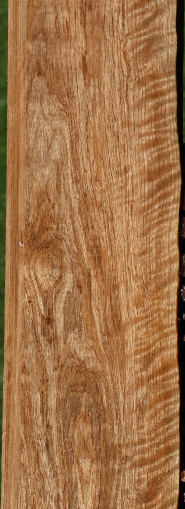 Asian Satinwood can contain the most amazing 3-D curl we’ve ever seen! This material has been air dried for 4 years. It is generally dry, but may contain some residual moisture. Boards are wax sealed on the ends only. Turning blanks are either completely wax sealed or sealed on the ends only. Some spalting or minor checking may be present, but this can be remedied with CA glue. 95% of these pieces are clean and free of defects. Please leave wax on the wood until use to avoid checking. Beautiful luster and sheen as well as fine grain with wonderful workability make this an exceptional choice for woodworking projects. This piece has a partial rough edge. Please see pictures for details.