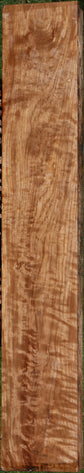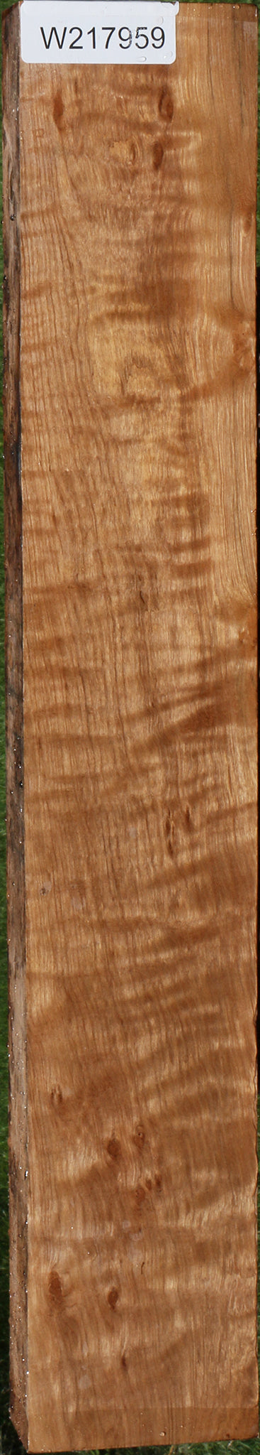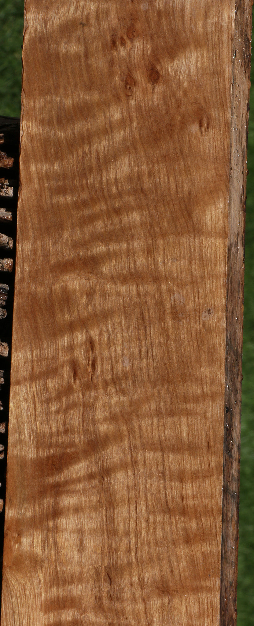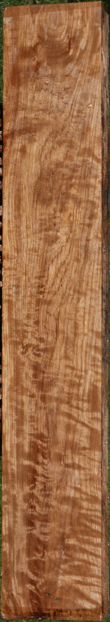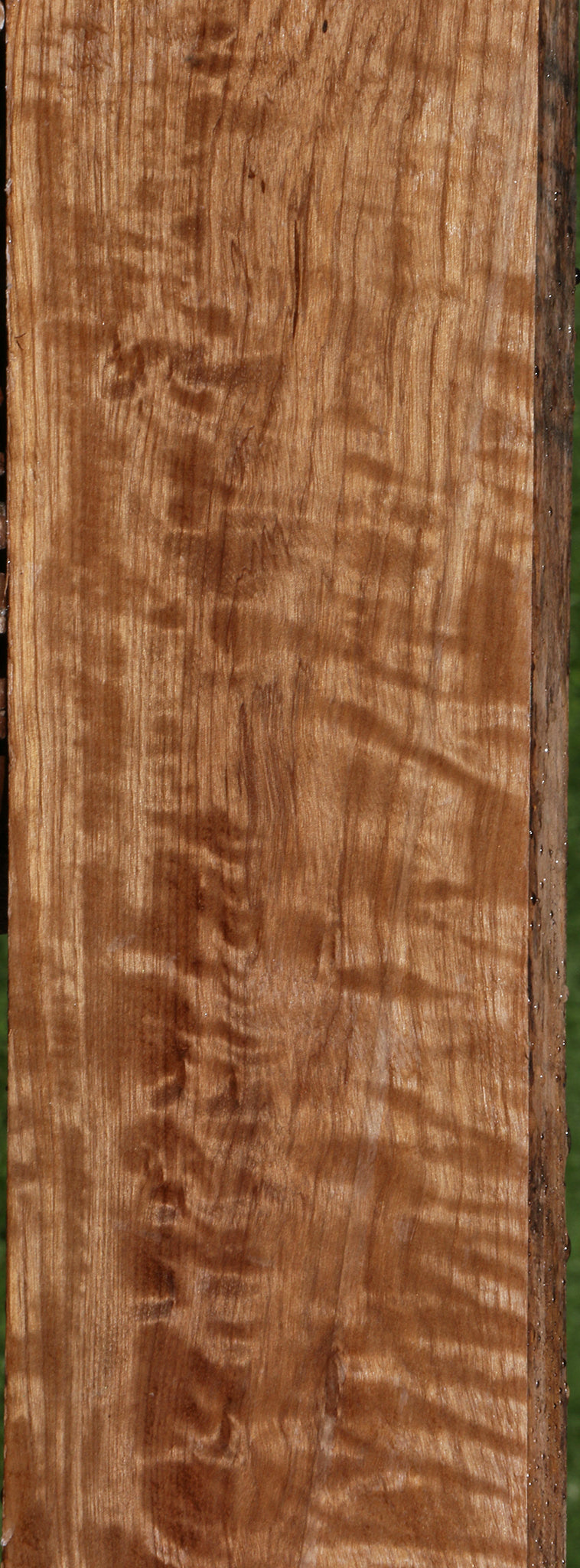 Asian Satinwood can contain the most amazing 3-D curl we’ve ever seen! This material has been air dried for 4 years. It is generally dry, but may contain some residual moisture. Boards are wax sealed on the ends only. Turning blanks are either completely wax sealed or sealed on the ends only. Some spalting or minor checking may be present, but this can be remedied with CA glue. 95% of these pieces are clean and free of defects. Please leave wax on the wood until use to avoid checking. Beautiful luster and sheen as well as fine grain with wonderful workability make this an exceptional choice for woodworking projects. This piece has inclusions. Please see pictures for details.