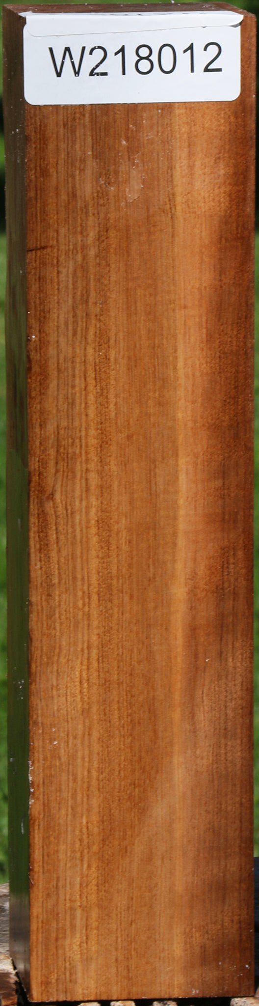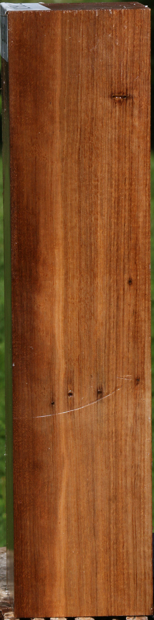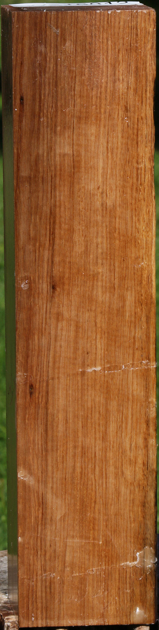 Asian Satinwood can contain the most amazing 3-D curl we’ve ever seen! This material has been air dried for 4 years. It is generally dry, but may contain some residual moisture. Boards are wax sealed on the ends only. Turning blanks are either completely wax sealed or sealed on the ends only. Some spalting or minor checking may be present, but this can be remedied with CA glue. 95% of these pieces are clean and free of defects. Please leave wax on the wood until use to avoid checking. Beautiful luster and sheen as well as fine grain with wonderful workability make this an exceptional choice for woodworking projects. This piece has a partial rough edge. Please see pictures for details.