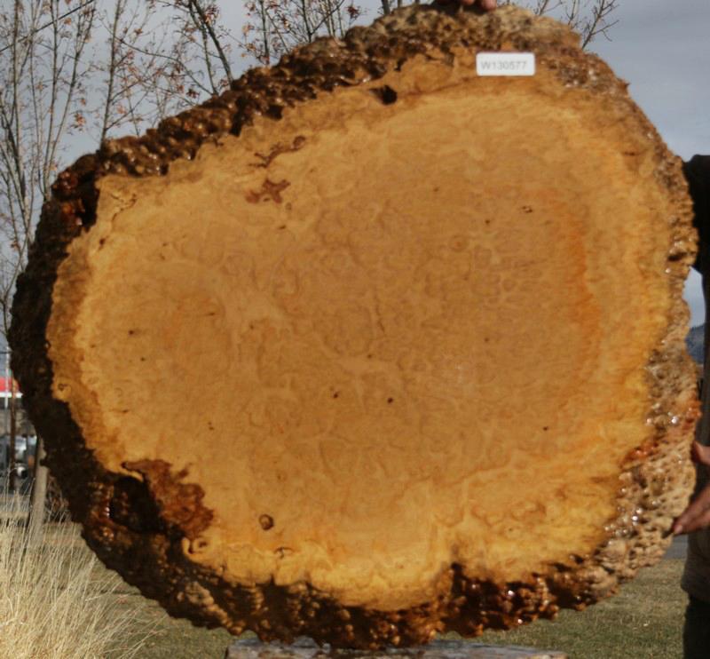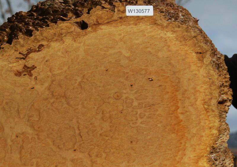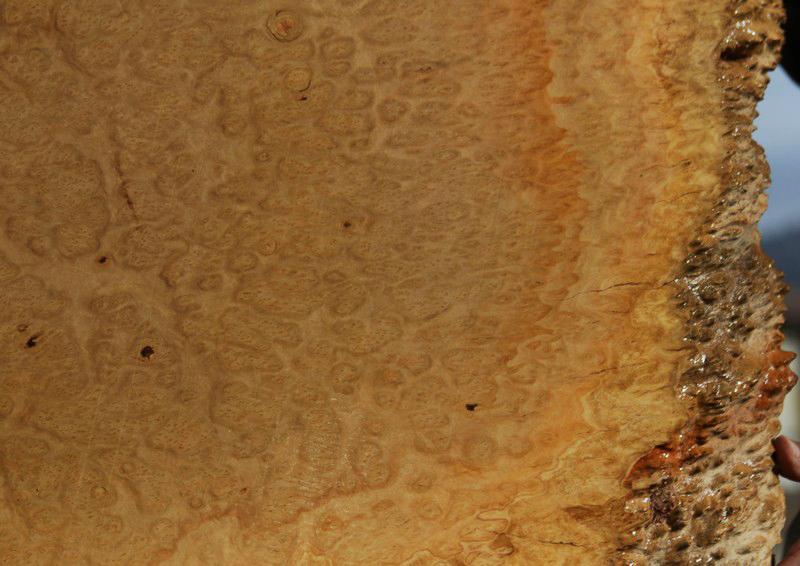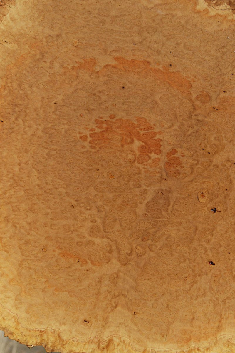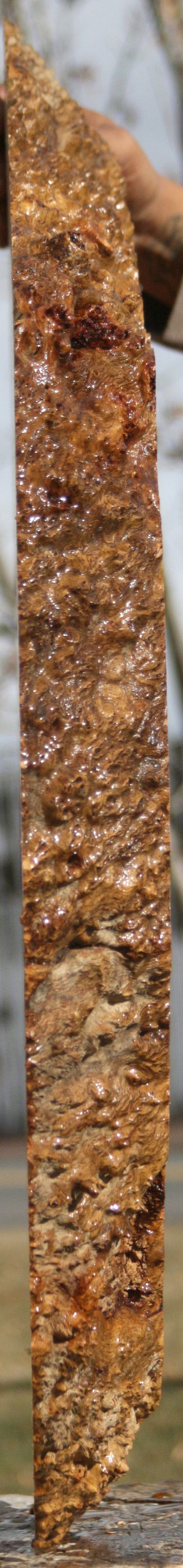 This unique Australian wood is very dense with spectacular grain! A very high polish is attainable and voids or checks are easily filled with epoxy resin. Sharp tools are recommended. Most pieces are dry and ready to use, although there may be slight residual moisture in some. This gorgeous wood will make projects that are unforgettable. This round slab has surfaced checks, incursions, and small knots present.