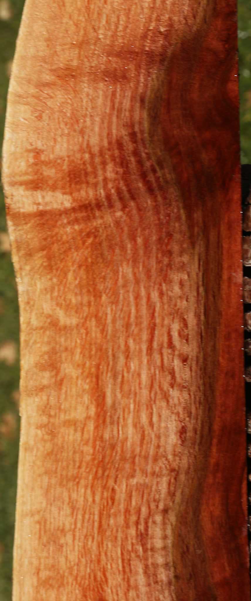 This very rare Australian Beefwood lumber has warm red colors contrasting with lighter colored sapwood. It is kiln dried and has been surfaced on two sides. There may be an occasional check on a live edge or small end check. There may be a 1/16" to 1/8" bow or twist in boards over 36". Try this Australian species out today, as it is rarely available on the US market! This piece has inclusions. Please see pictures for details.