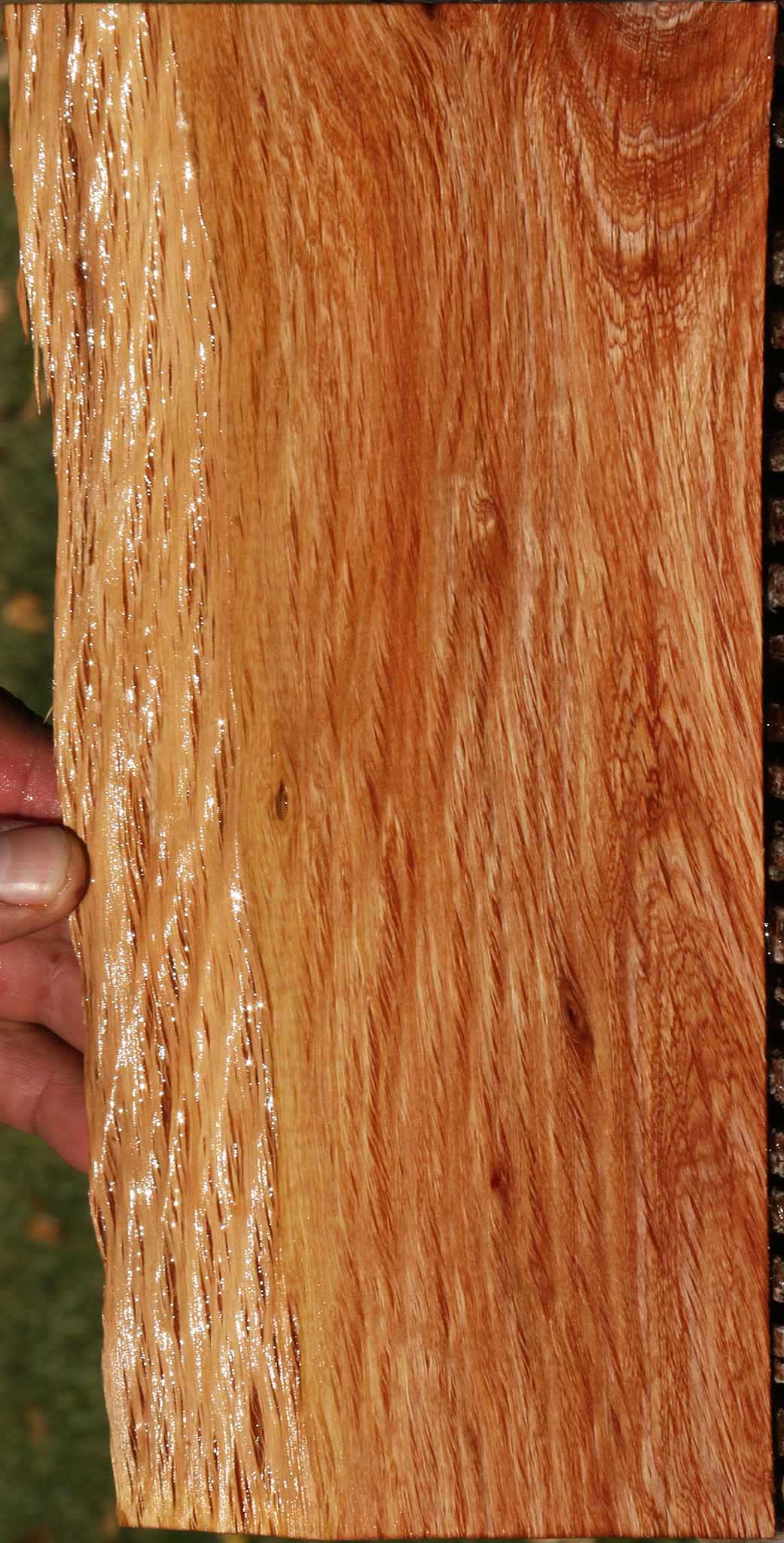 This very rare Australian Beefwood lumber has warm red colors contrasting with lighter colored sapwood. It is kiln dried and has been surfaced on two sides. There may be an occasional check on a live edge or small end check. There may be a 1/16" to 1/8" bow or twist in boards over 36". Try this Australian species out today, as it is rarely available on the US market! This piece has inclusions. Please see pictures for details.