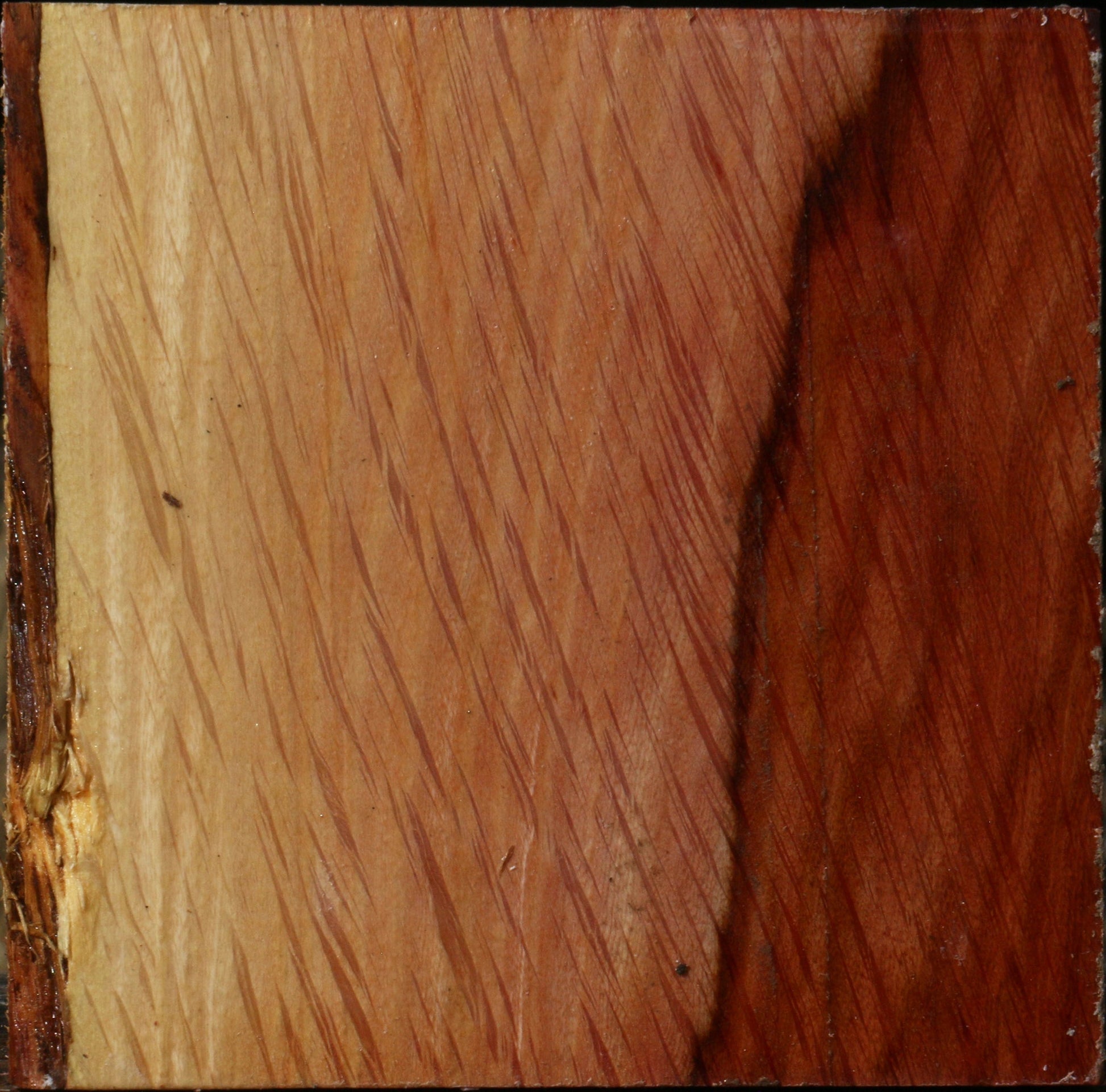 This very rare Australian Beefwood has warm red colors contrasting with lighter colored sapwood. It was freshly cut in October of 2025 and is fully wax sealed to preserve its quality. This is ideal material for twice turning. Some checks may develop on the live edges as the wood dries; shrinkage in this species is normal as it dries. A surface or end check may be present. This material is ideal for twice turning. Try this Australian species out today, as it is rarely available on the US market! This piece has a partial rough edge. Please see pictures for details.