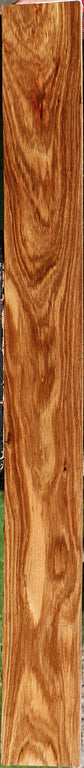 Beli, a unique African hardwood, is also known as Zebreli. It has similarities to African Zebrawood, but is superior in its workability and finishing properties. This hardwood lumber has been kiln dried and surfaced on two sides. There may be an occasional surface or end check. A slight 1/16" to 1/8" bow or twist may be present on boards over 36" long. The wood is open grained and may have gum pockets. It is quite a treat to bring you this wood, as Beli wood is not often available on the US woodworking market! This piece has pin knots and pin holes. Please see pictures for details.