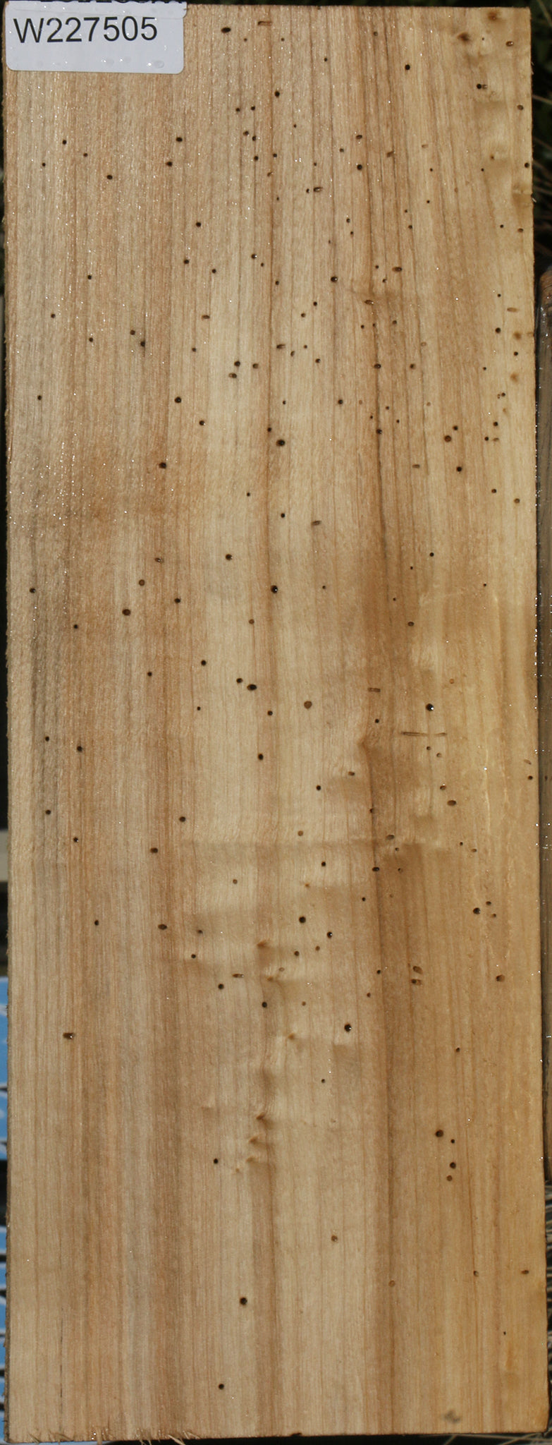 This Black Cottonwood lumber has nice colors and patterns as it was cut from the figured areas of crotchwood logs. It has been kiln dried and surfaced on two sides. Occasional checks or pin holes may be present in some. Boards over 36" may have a 1/16" to 1/8" bow or twist. Cottonwood is an easy hardwood to work, glue and sand, making it an ideal hardwood for your woodworking projects. This piece has bug holes. Please see pictures for details.