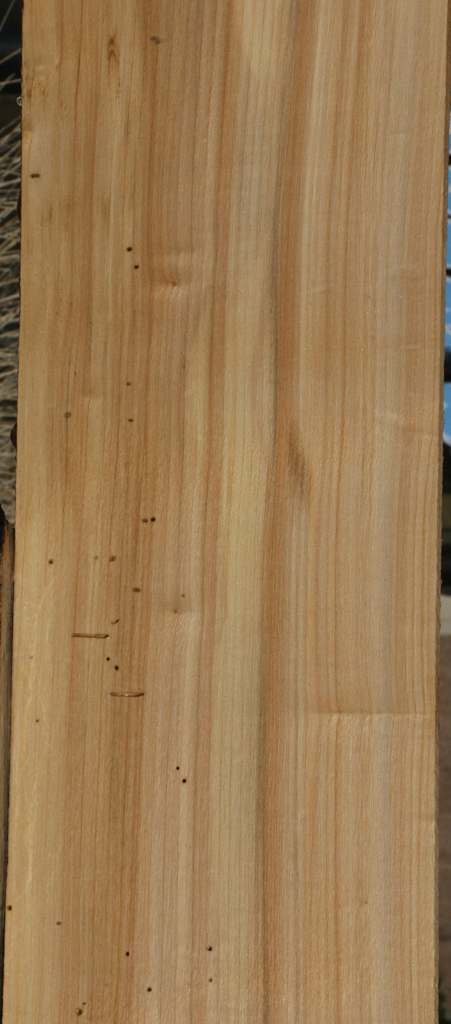 This Black Cottonwood lumber has nice colors and patterns as it was cut from the figured areas of crotchwood logs. It has been kiln dried and surfaced on two sides. Occasional checks or pin holes may be present in some. Boards over 36" may have a 1/16" to 1/8" bow or twist. Cottonwood is an easy hardwood to work, glue and sand, making it an ideal hardwood for your woodworking projects. This piece has bug holes. Please see pictures for details.