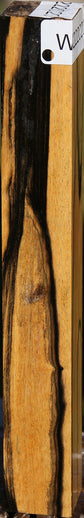 This beautiful Black and White Ebony is kiln dried, wax sealed on the ends, and is ready for use. Some boards may have some internal checks that are not visible from the outside. Uncommonly beautiful, you’ll see the unique patterns and contrast in each individually pictured board! It is natural in this species to have hairline checks along the black stripes. Sandpaper and glue can easily remedy this! Pin holes may be present. We have carefully described the defects; however, hairline checks can be present that are not specifically noted. 1/16" to 1/8" bow/twist may be present in boards over 36" long. This incredible hardwood is unmatched in beauty and delivers a glass-like natural polish. This piece has splits. Please see pictures for details.