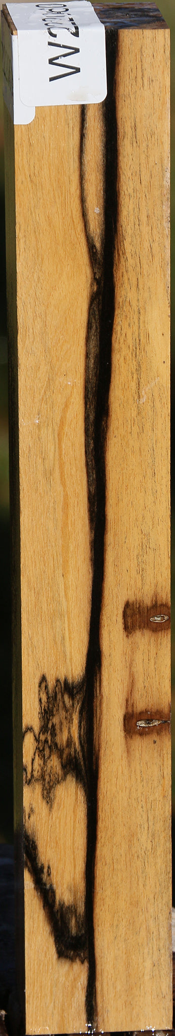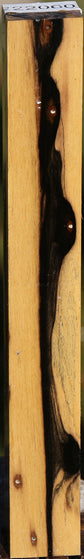 This beautiful Black and White Ebony is kiln dried, wax sealed on the ends, and is ready for use. Some boards may have some internal checks that are not visible from the outside. Uncommonly beautiful, you’ll see the unique patterns and contrast in each individually pictured board! It is natural in this species to have hairline checks along the black stripes. Sandpaper and glue can easily remedy this! Pin holes may be present. We have carefully described the defects; however, hairline checks can be present that are not specifically noted. 1/16" to 1/8" bow/twist may be present in boards over 36" long. This incredible hardwood is unmatched in beauty and delivers a glass-like natural polish. This piece has bug holes. Please see pictures for details.