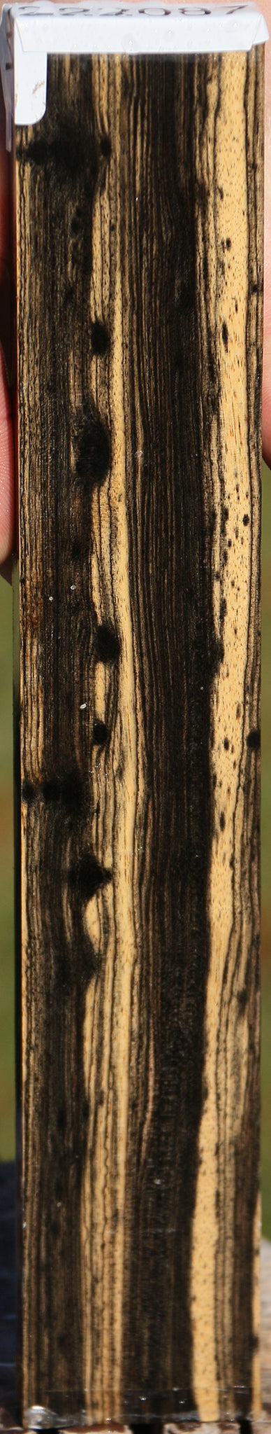 This beautiful Black and White Ebony is kiln dried, wax sealed on the ends, and is ready for use. Some boards may have some internal checks that are not visible from the outside. Uncommonly beautiful, you’ll see the unique patterns and contrast in each individually pictured board! It is natural in this species to have hairline checks along the black stripes. Sandpaper and glue can easily remedy this! Pin holes may be present. We have carefully described the defects; however, hairline checks can be present that are not specifically noted. 1/16" to 1/8" bow/twist may be present in boards over 36" long. This incredible hardwood is unmatched in beauty and delivers a glass-like natural polish. This piece has inclusions. Please see pictures for details.