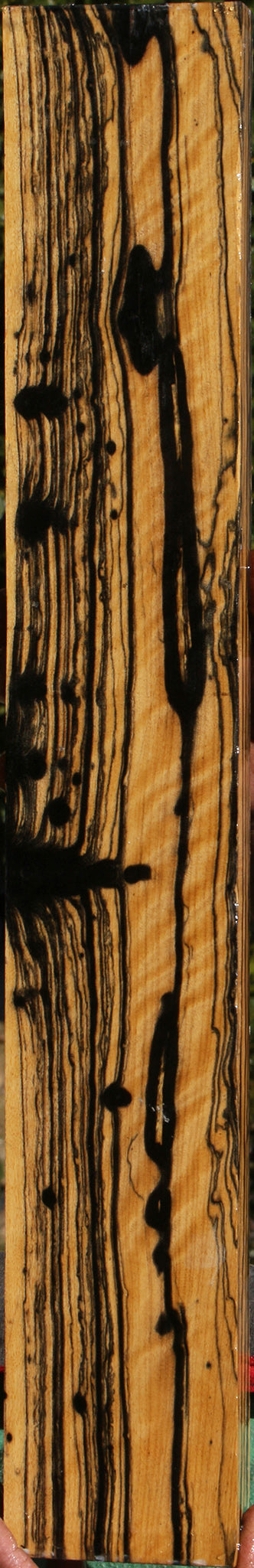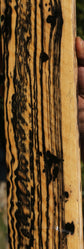 This beautiful Black and White Ebony is kiln dried, wax sealed on the ends, and is ready for use. Some boards may have some internal checks that are not visible from the outside. Uncommonly beautiful, you’ll see the unique patterns and contrast in each individually pictured board! It is natural in this species to have hairline checks along the black stripes. Sandpaper and glue can easily remedy this! Pin holes may be present. We have carefully described the defects; however, hairline checks can be present that are not specifically noted. 1/16" to 1/8" bow/twist may be present in boards over 36" long. This incredible hardwood is unmatched in beauty and delivers a glass-like natural polish. This piece has checks. Please see pictures for details.