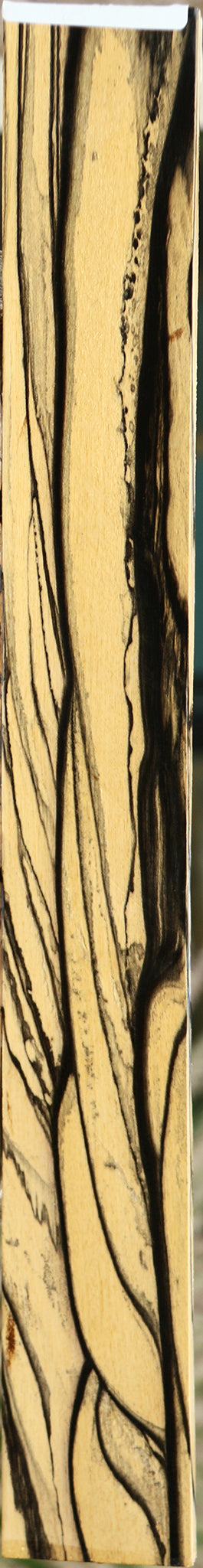 This beautiful Black and White Ebony is kiln dried, wax sealed on the ends, and is ready for use. Some boards may have some internal checks that are not visible from the outside. Uncommonly beautiful, you’ll see the unique patterns and contrast in each individually pictured board! It is natural in this species to have occasional hairline checks along the black stripes. Sandpaper and glue can easily remedy this! Pin holes may be present. We have carefully described the defects; however, hairline checks can be present that are not specifically noted. 1/16" to 1/8" bow/twist may be present in boards over 36" long. This incredible hardwood is unmatched in beauty and delivers a glass-like natural polish. This piece would be ideal for a fingerboard.