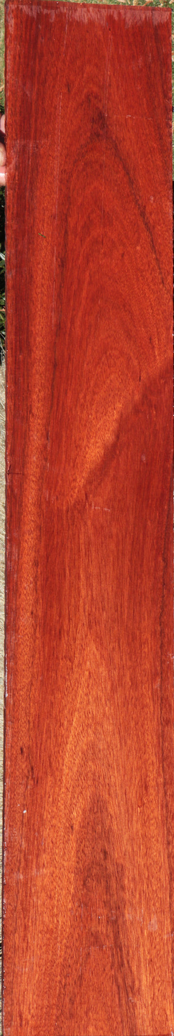 This superior quality, dense Bloodwood finishes beautifully, accenting its colors and making it ideal for your woodworking projects! This material is kiln dried, surfaced on two sides, and ready to use. Boards over 3 ft. may contain a slight bow or twist. Hand select your one-of-a-kind board today. Dark red Bloodwood has become very difficult to obtain. Get your piece while you can! This piece has knots and bug holes. Please see pictures for details.
