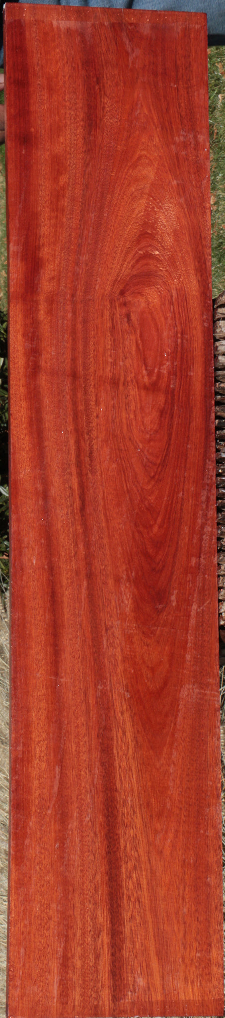 This superior quality, dense Bloodwood finishes beautifully, accenting its colors and making it ideal for your woodworking projects! This material is kiln dried, surfaced on two sides, and ready to use. Boards over 3 ft. may contain a slight bow or twist. Hand select your one-of-a-kind board today. Dark red Bloodwood has become very difficult to obtain. Get your piece while you can! This piece has knots. Please see pictures for details.