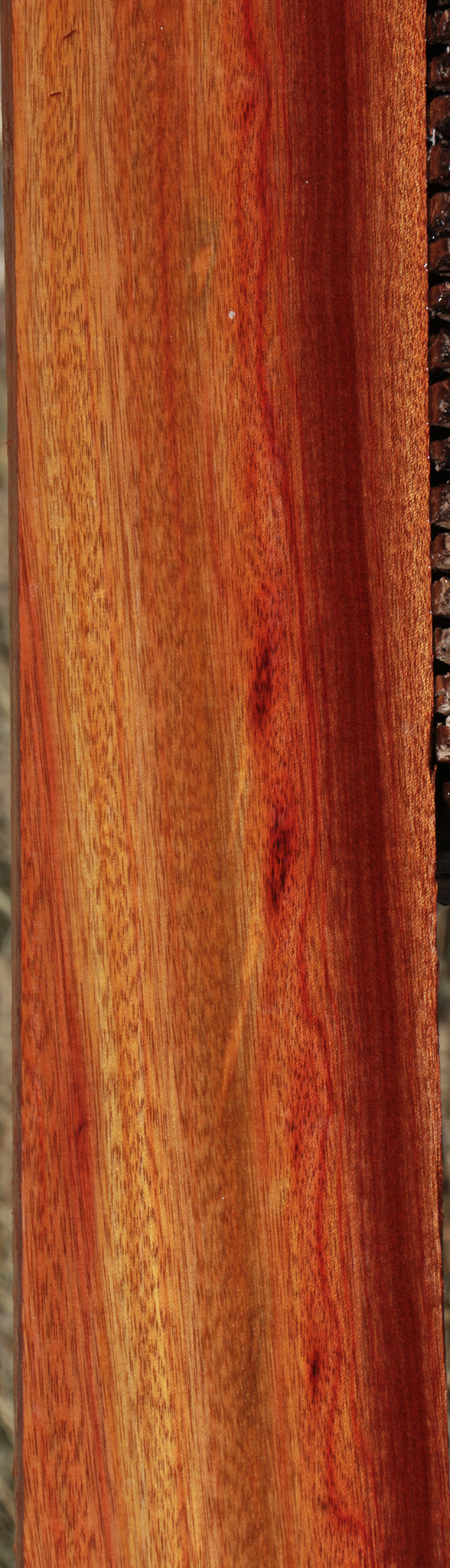 This superior quality, dense Bloodwood finishes beautifully, accenting its colors and making it ideal for your woodworking projects! This material is kiln dried, surfaced on two sides, and ready to use. Boards over 3 ft. may contain a slight bow or twist. Hand select your one-of-a-kind board today. Dark red Bloodwood has become very difficult to obtain. Get your piece while you can! This piece has knots. Please see pictures for details.