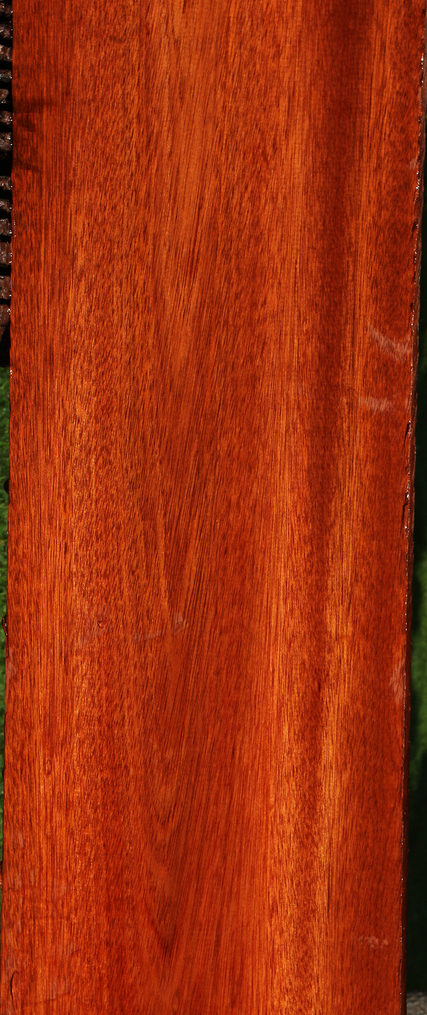 This superior quality, dense Bloodwood finishes beautifully, accenting its colors and making it ideal for your woodworking projects! This material is kiln dried, surfaced on two sides, and ready to use. Boards over 3 ft. may contain a slight 1/16" to 1/8" bow or twist. An occasional surface check may be present in this very high quality stock. Hand select your one-of-a-kind board today. Dark red Bloodwood has become very difficult to obtain. Get your piece while you can! This piece has a 1/2" twist. Please see pictures for details.