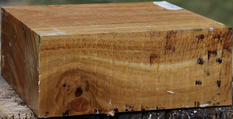 Blue Gum is incredibly easy to turn and takes a high natural polish. It has ribbon figure or fiddleback on most quarter sawn faces. Freshly cut in March of 2023 and completely wax sealed, this wood contains residual moisture. Twice turning is recommended. An end check may be present but should turn away. This wood may develop shrinkage or checks during drying. Make inexpensive woodturning projects from this classic, affordable exotic hardwood!