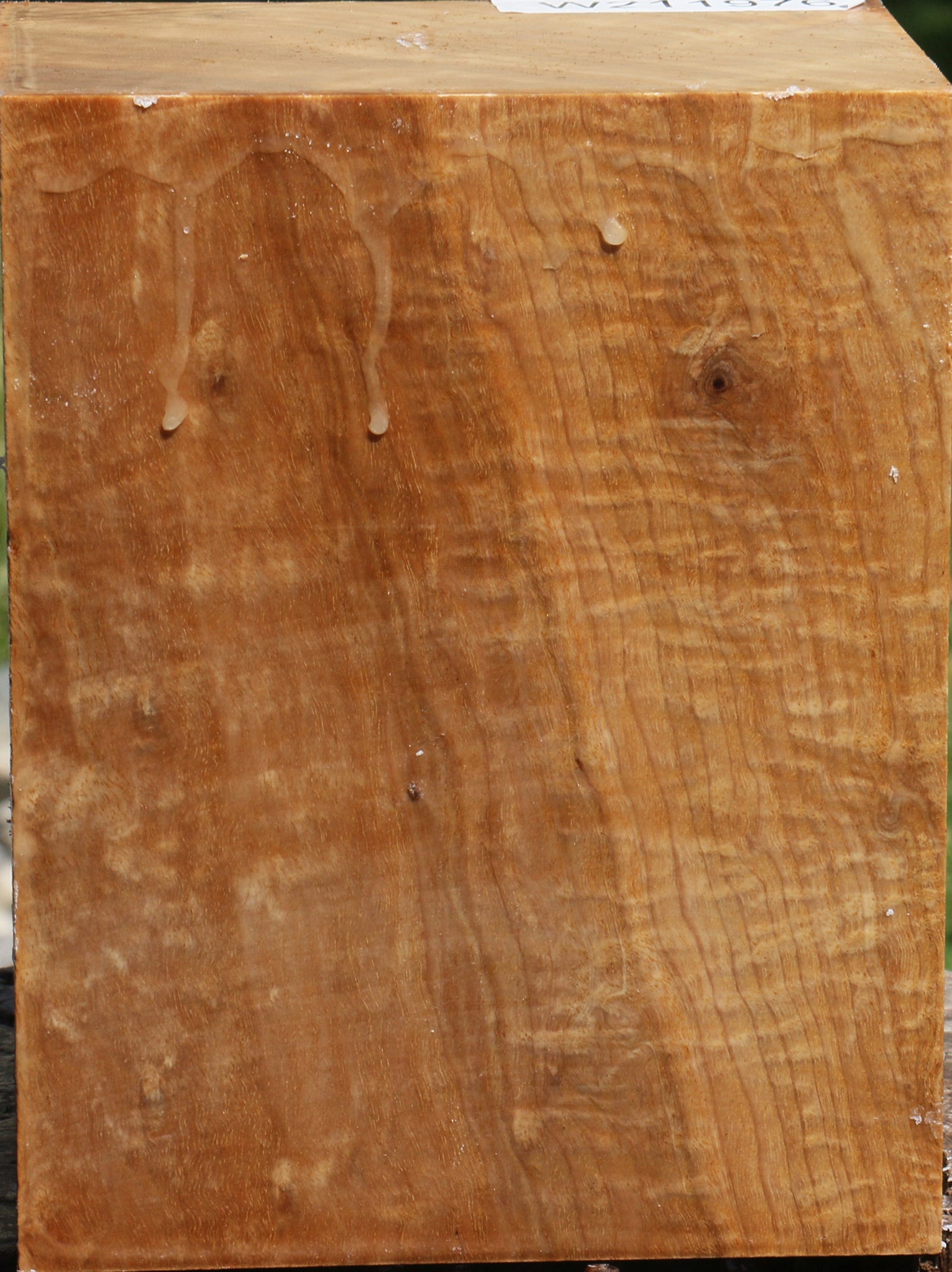 Australian Eucalyptus is incredibly easy to turn and takes a high natural polish. This batch has an unusually high concentration of figure; in fact, it's the most figured log we've procured in 25 years. Freshly cut in May of 2024 and completely wax sealed, this wood contains residual moisture. Twice turning is recommended. An end check may be present but should turn away. This wood may develop shrinkage or checks during drying. Make stunning woodturning projects from this classic exotic hardwood! This piece has inclusions. Please see pictures for details.