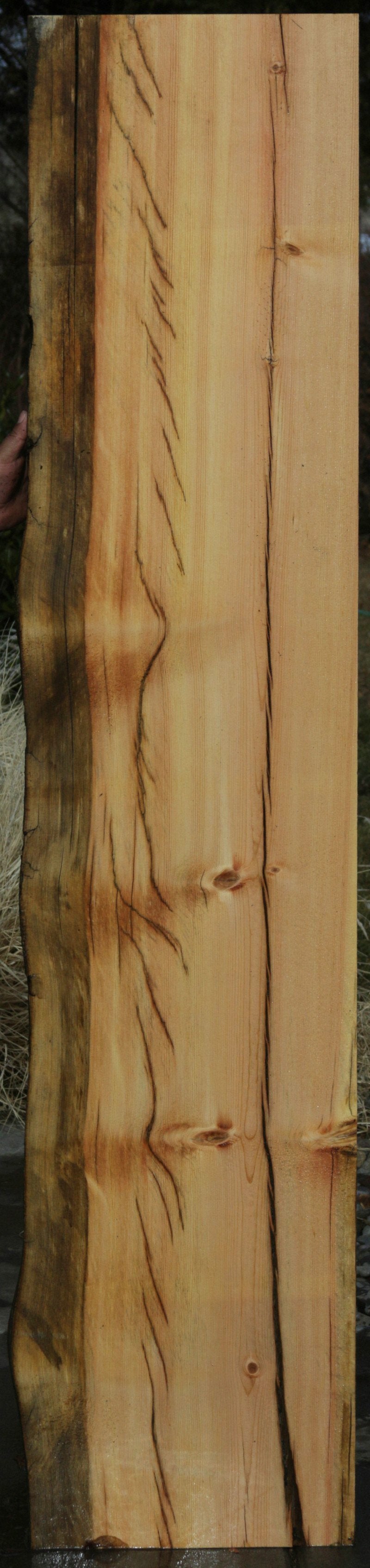 This mantel has nice grain and color! It has numerous knots, incursions, splits, and bark incursions present. Kiln dried and surfaced on two sides.