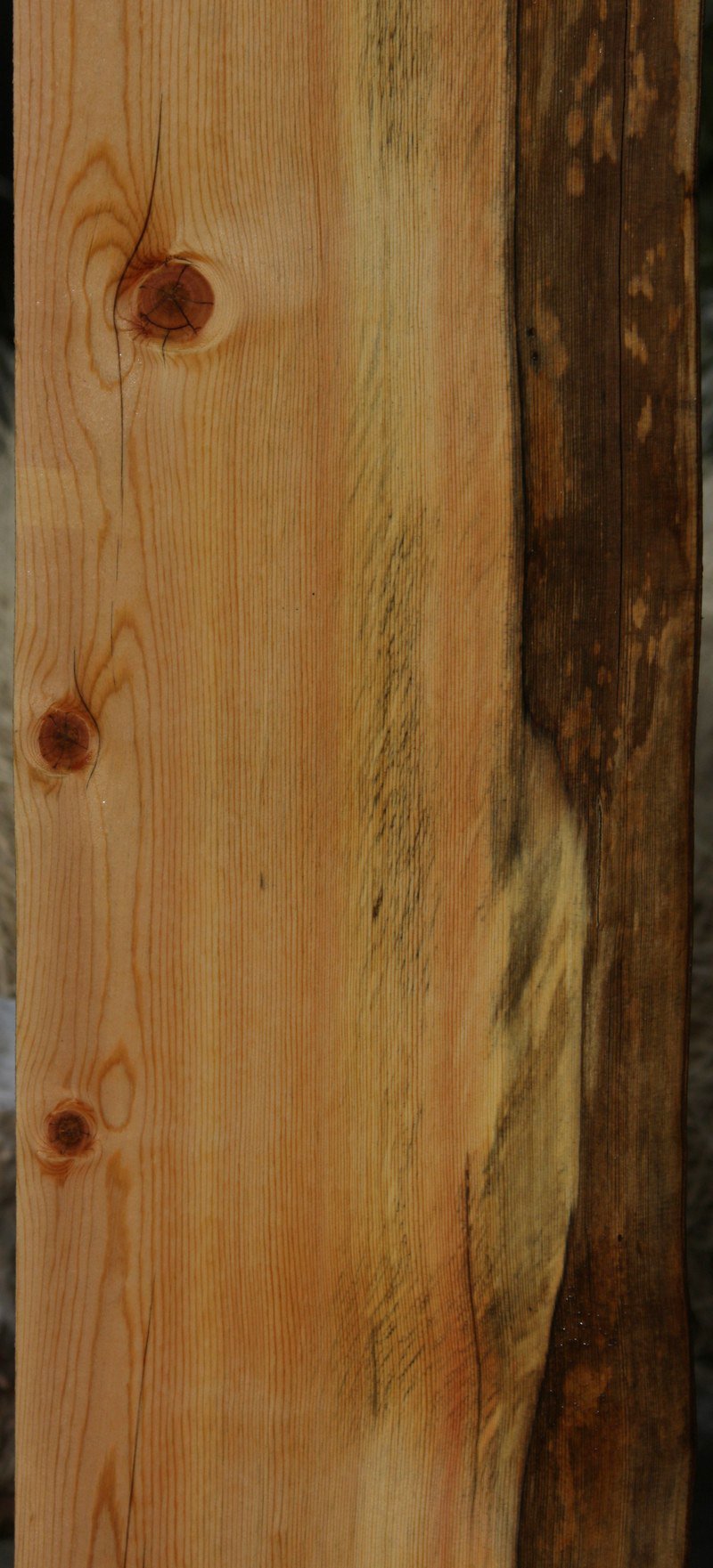 This mantel has nice colors and pattern! It has a couple large splits present. It has some really nice grayish blue colors! It has some spalted sapwood edge present. A hardener is recommended. Kiln dried and surfaced on two sides.