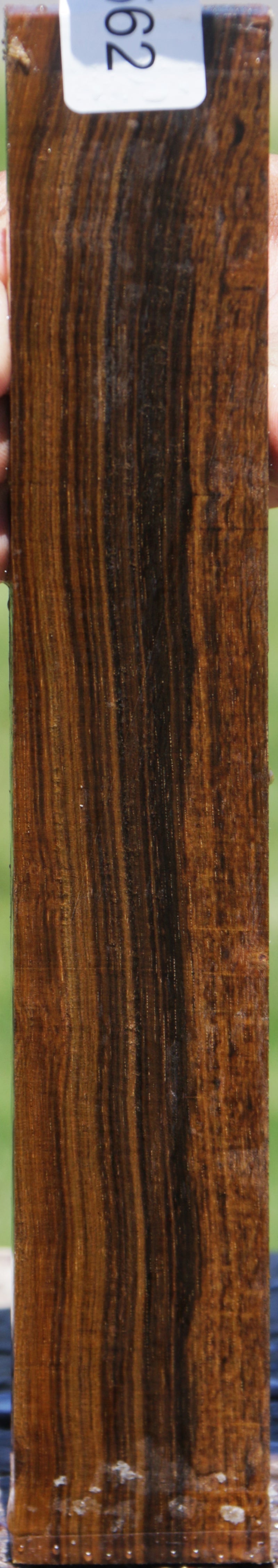 This Brazilian Blackheart lumber has a unique and very beautiful green/gray/brown color with a hint of red in some. This air dried stock was cut in January of 2021 and is ready to use. The ends are wax sealed. Occasional small end or surface checks might be present. This wood has similar working properties to Ebony.