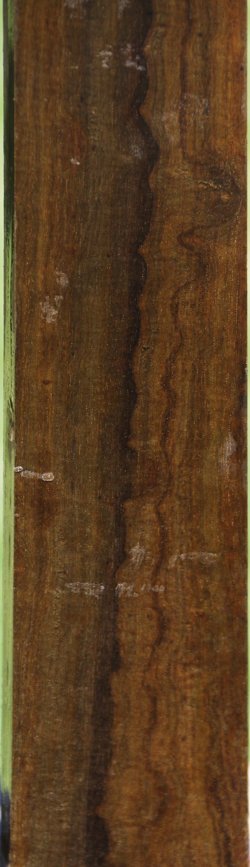 This Brazilian Blackheart lumber has a unique and very beautiful green/gray/brown color with a hint of red in some. This air dried stock was cut in January of 2021 and is ready to use. The ends are wax sealed. Occasional small end or surface checks might be present. This wood has similar working properties to Ebony.